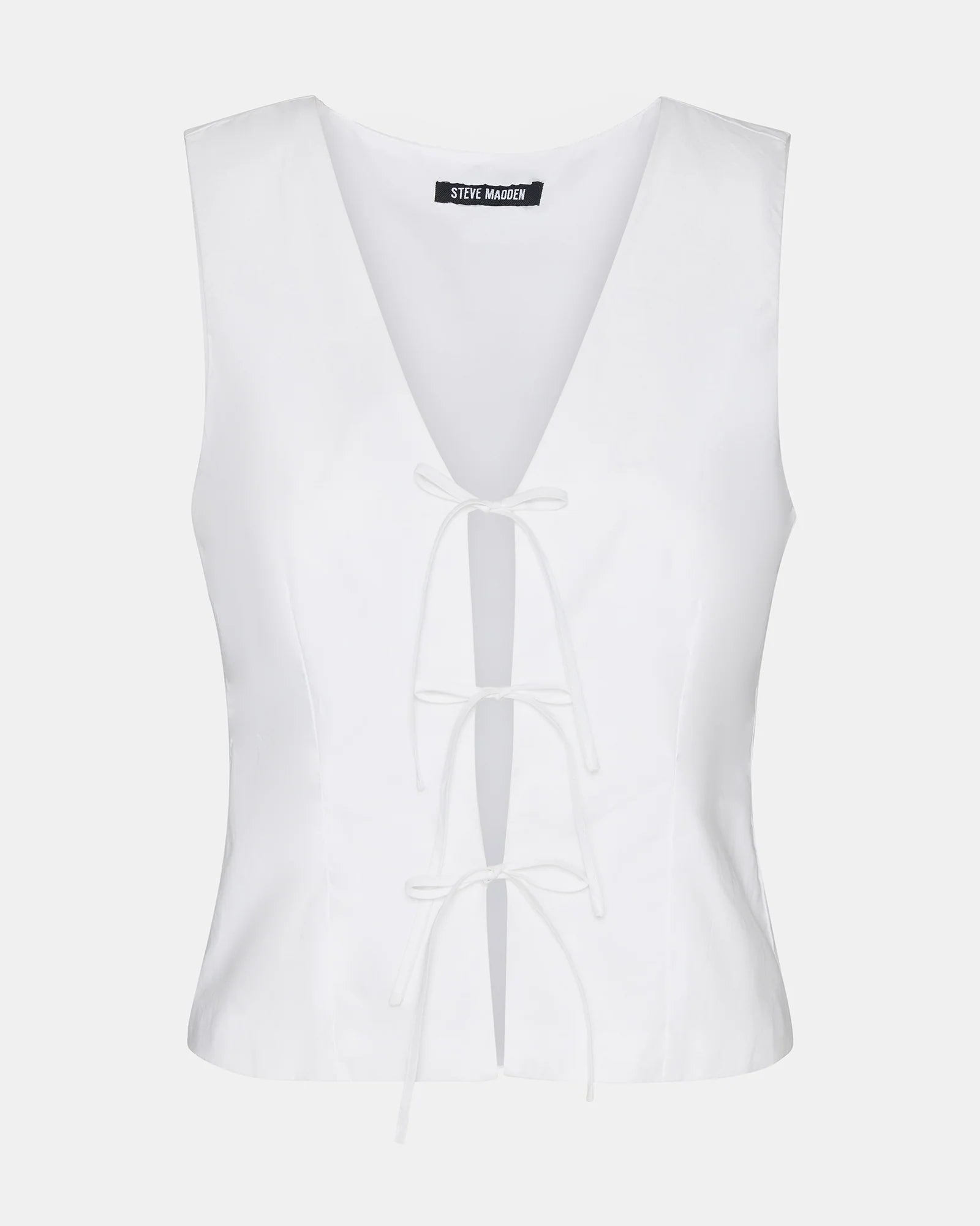 Crafted with a tie-front design, the ALIZA offers effortless style to any wardrobe. This sleeveless top is part of a matching set, providing a cohesive and versatile option for both casual and professional settings. Elevate your look with this must-have piece.