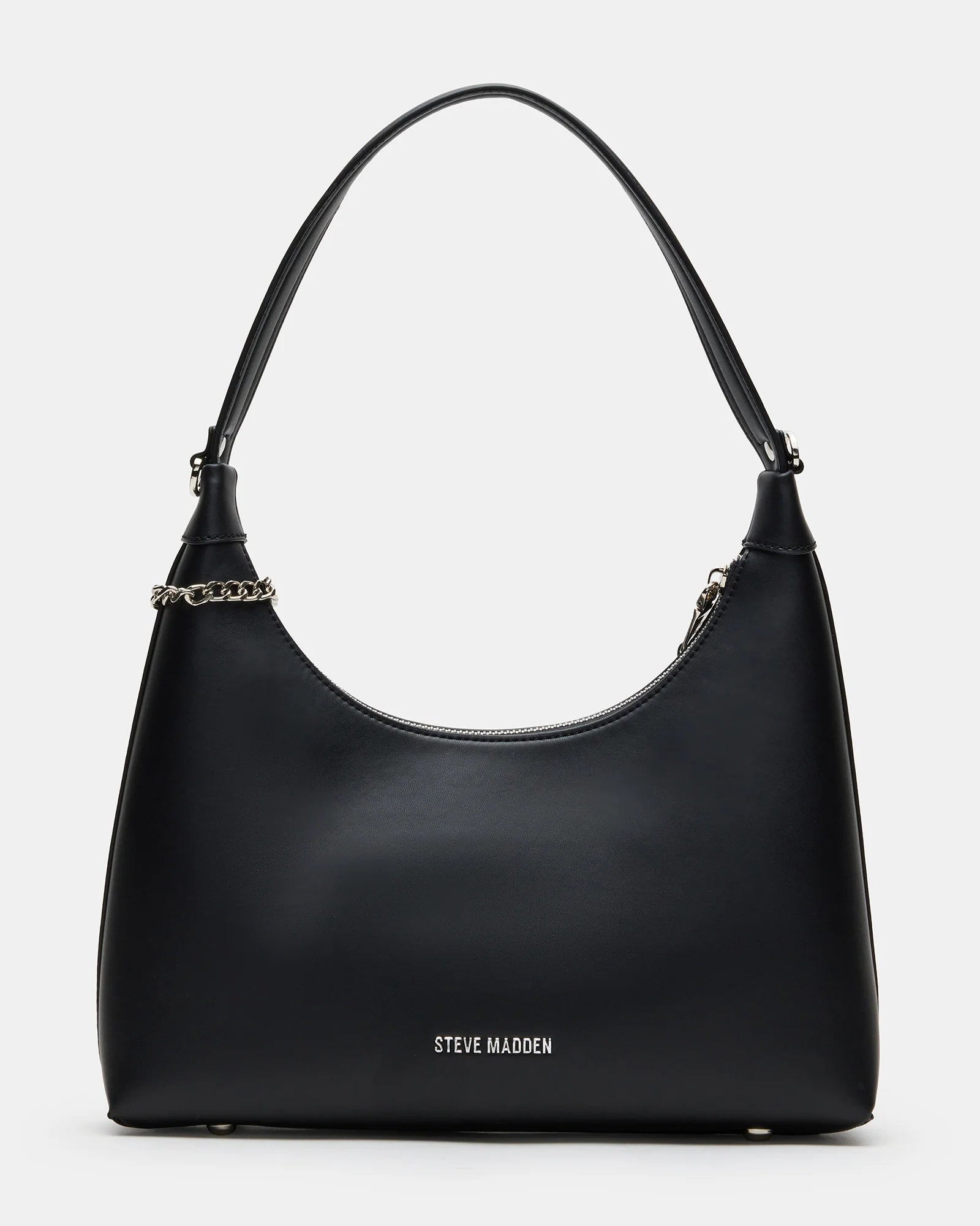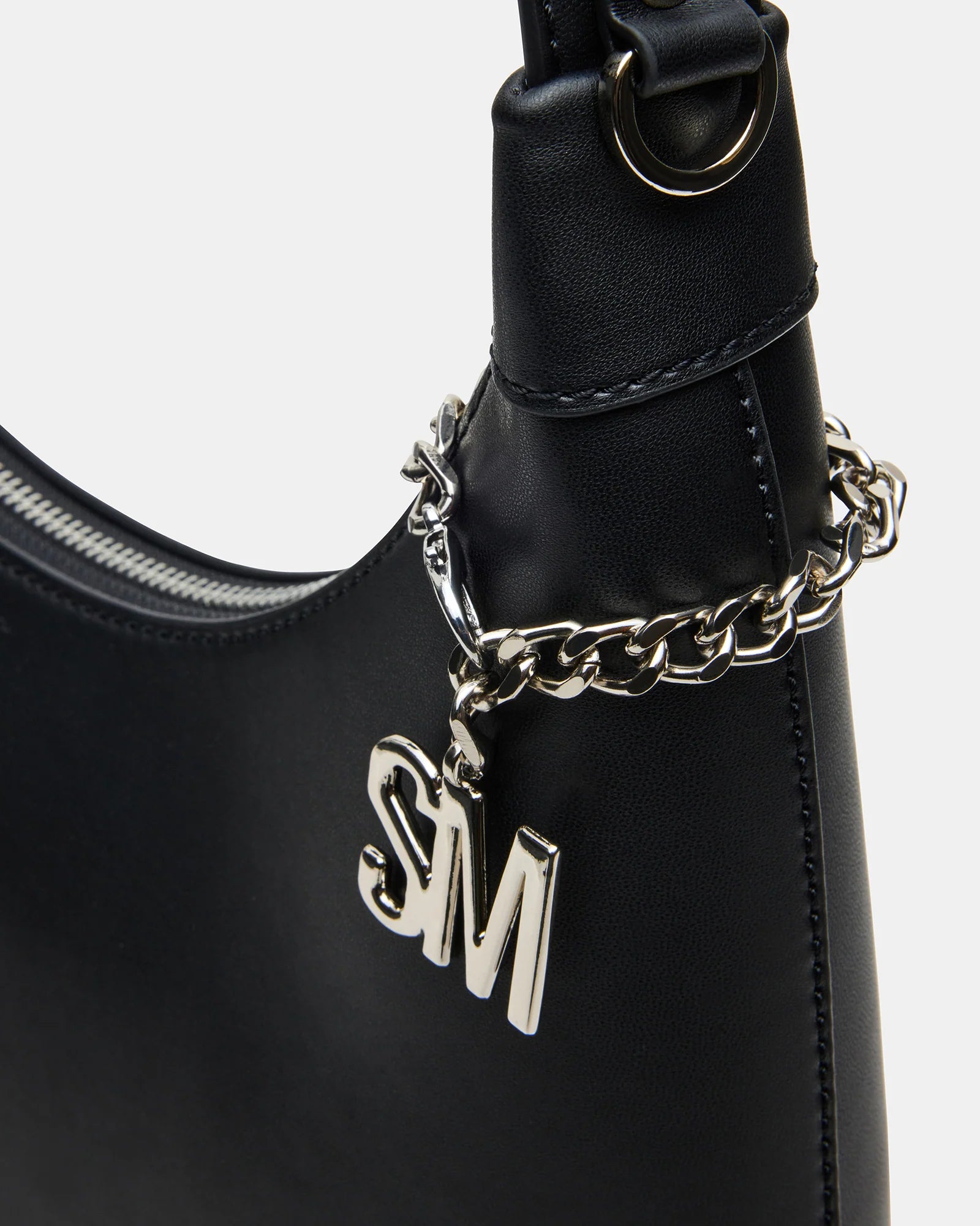 The AMARI BAG BLACK offers a sleek top-zipper design for secure and easy access. It includes an attachable logo chain charm that adds a refined detail, enhancing its sophisticated style. Inside, a pouch is conveniently placed on the back wall for organized storage of essentials. This shoulder bag blends practical features with elevated design, making it a versatile choice for everyday use.