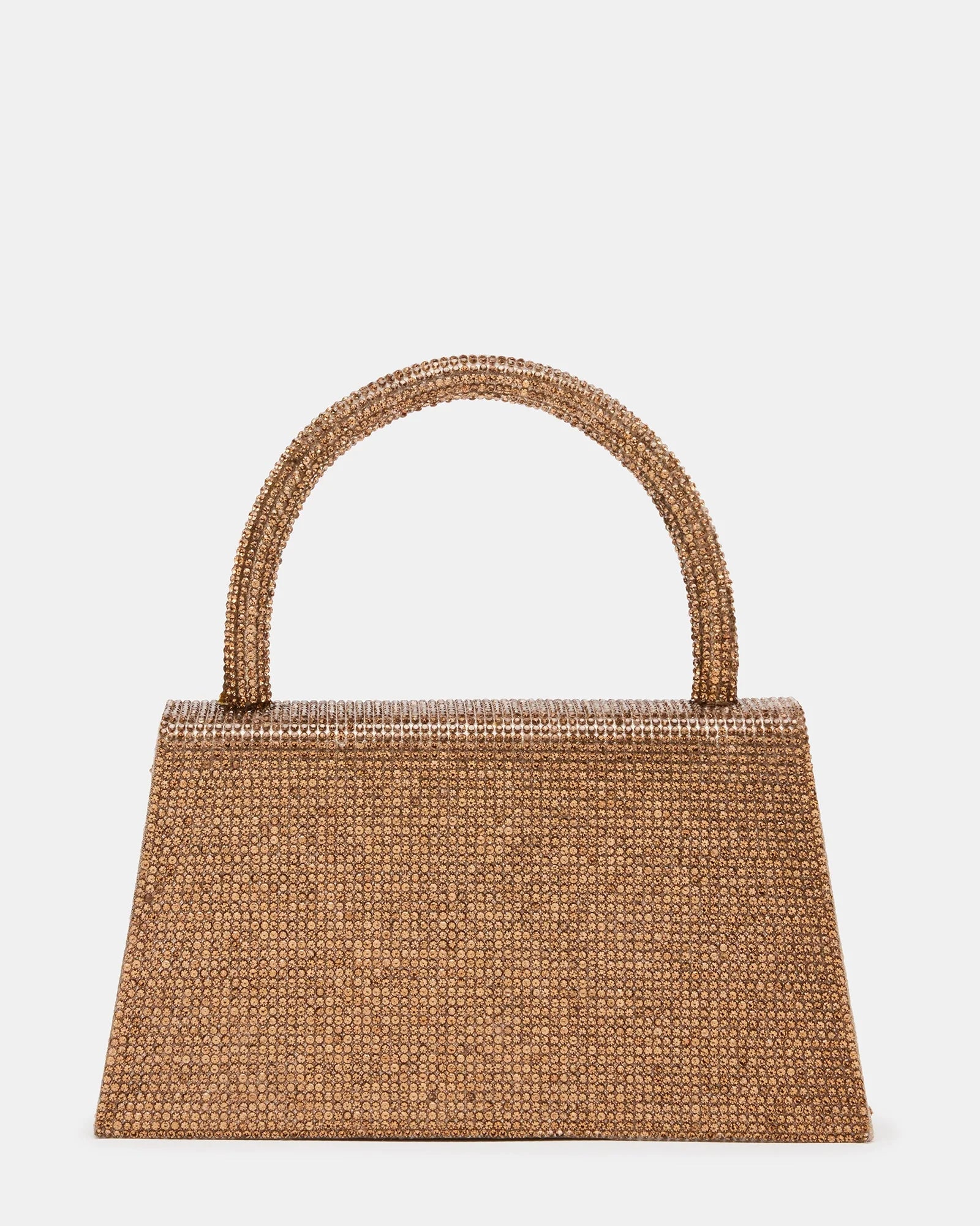 The AMINA bag is a structured trapezoid bag that's encrusted with allover embellishment and finished with a matching top handle.