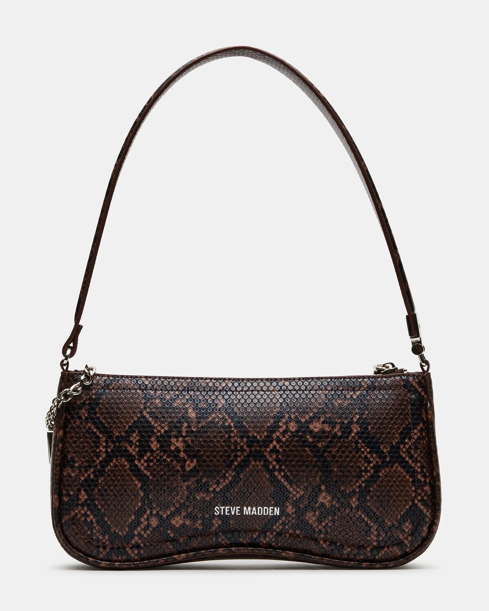 The ANGEL BAG BROWN SNAKE features a sculpted top-zipper design for secure and stylish access. Inside, an interior pouch on the back wall provides organized storage for essentials. A distinctive logo chain bag charm adds a refined, expert touch that complements the sleek silhouette, making this shoulder bag both functional and sophisticated for everyday wear.