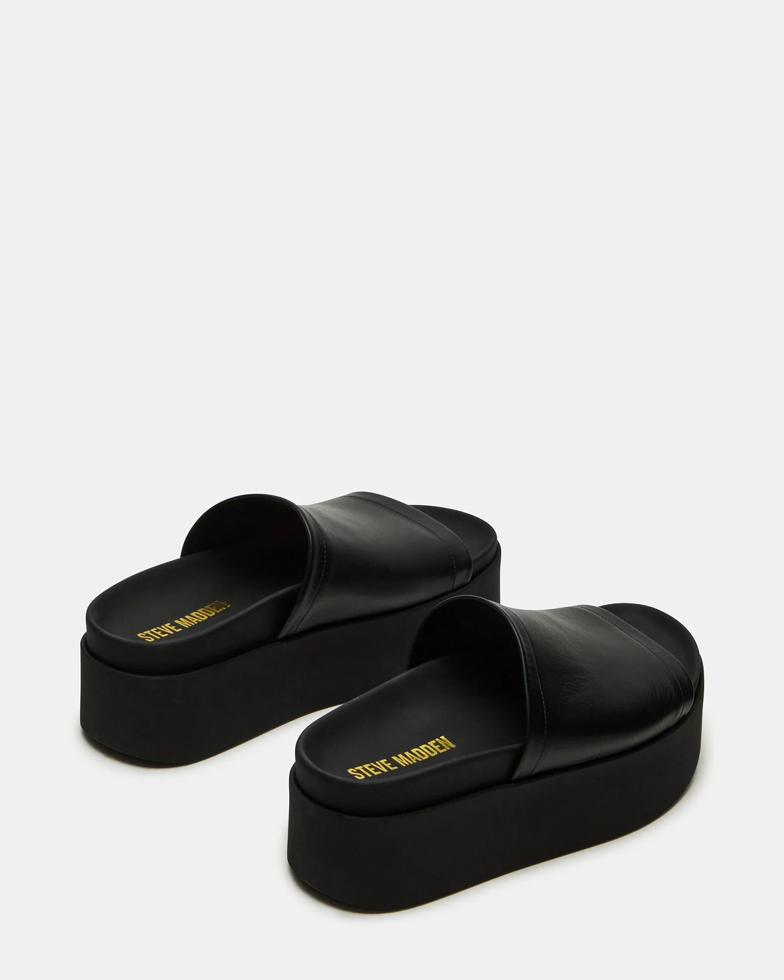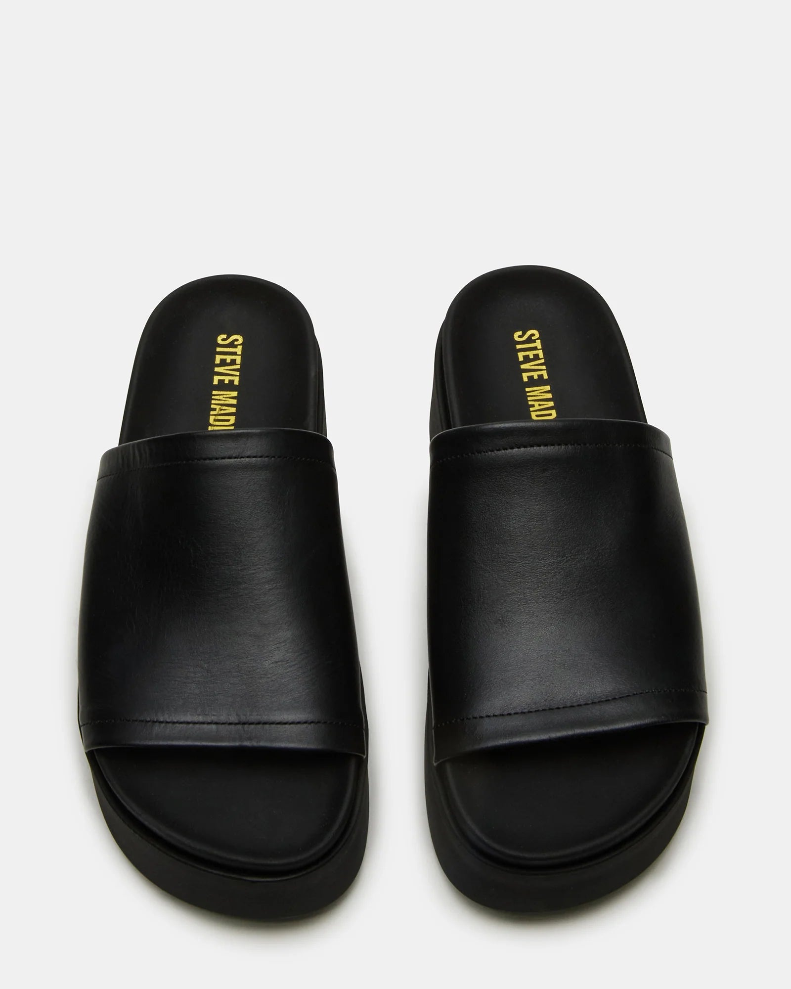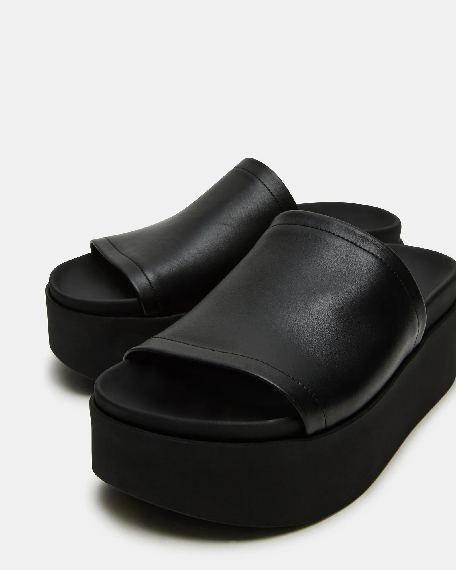 The ARWEN slide features a flatform design and rounded toe for a trendy yet comfortable look. With a chunky footbed, this sandal offers both style and support. Elevate any outfit with these versatile and chic sandals.