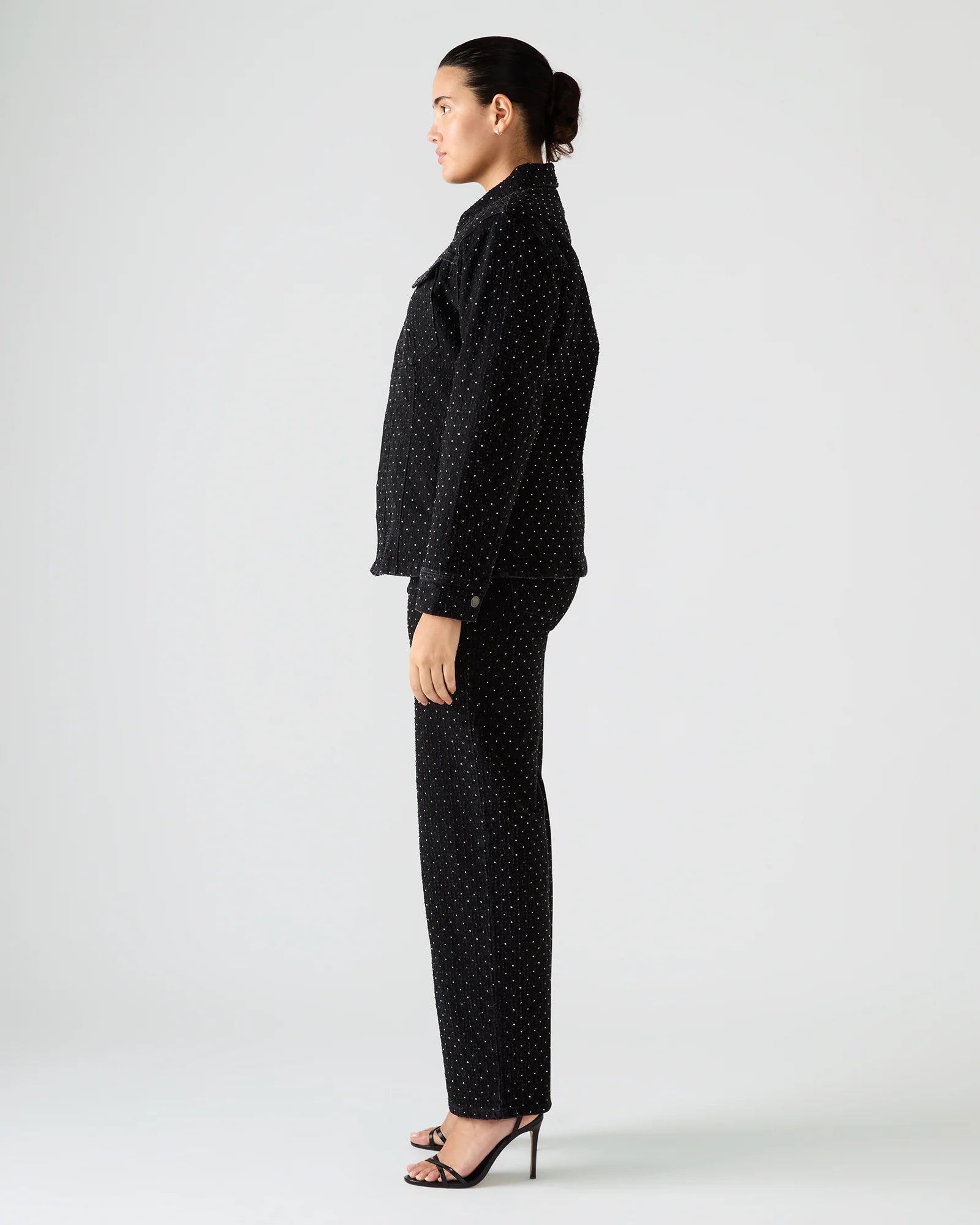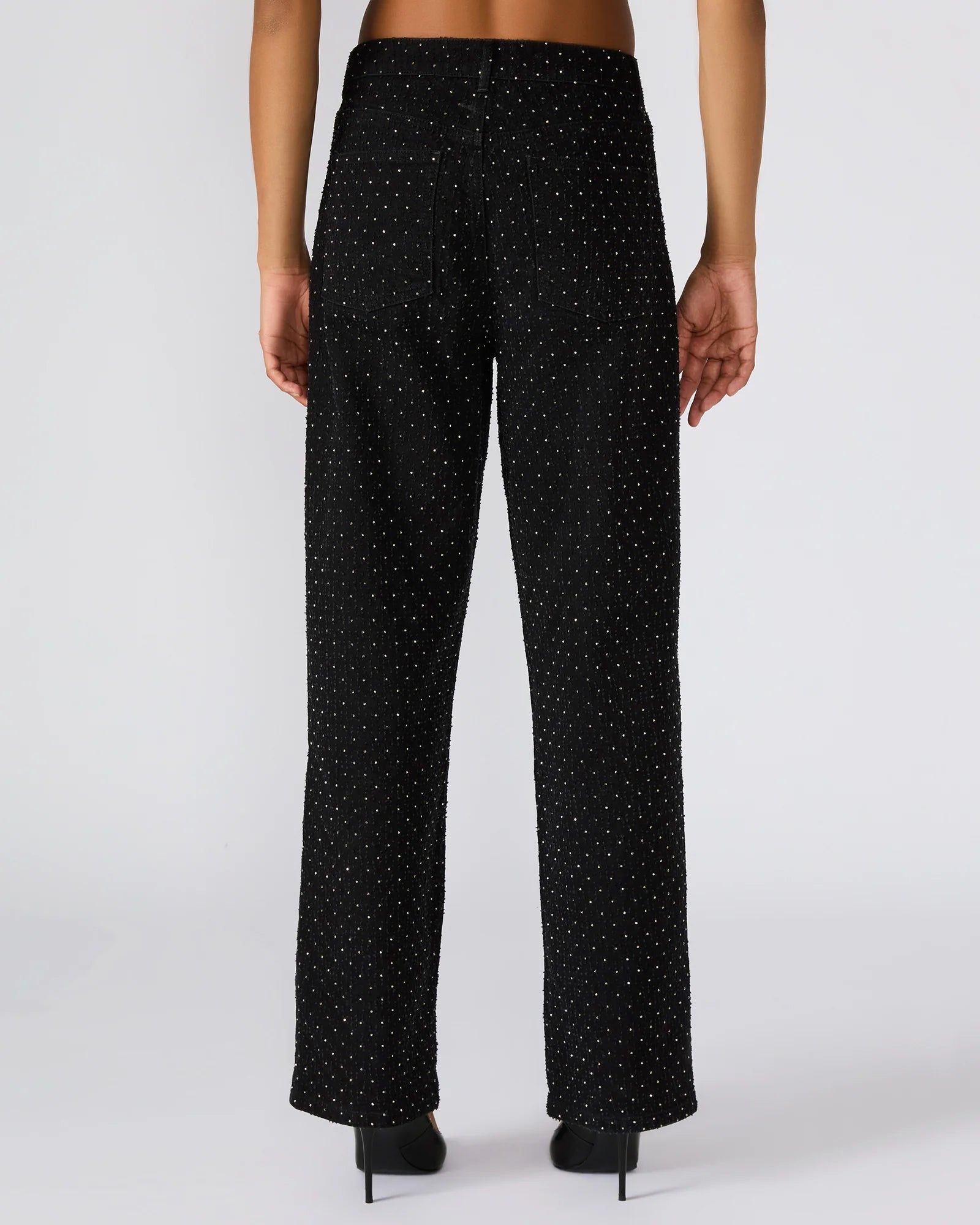 These AVALINE CRYSTAL BLACK straight-leg denim jeans feature a sleek wash enhanced with meticulously placed rhinestone embellishments, adding a refined sparkle to your wardrobe. Designed with practical front and back pockets, they combine fashion-forward style with everyday functionality. Perfect for elevating casual looks with a touch of sophistication.