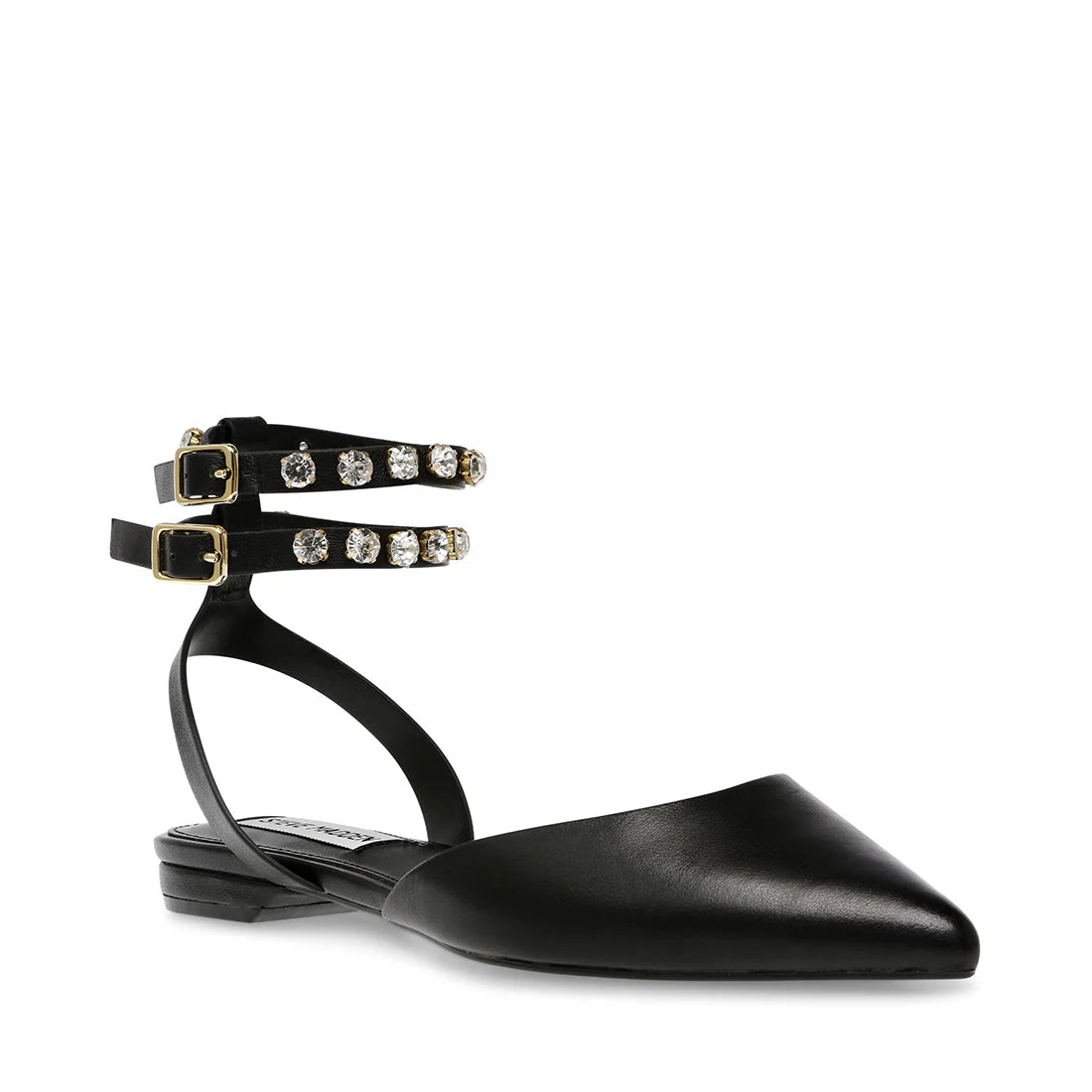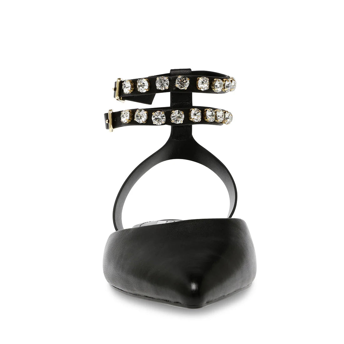 Dual ankle straps, a pointed toe and flat sole define this dainty little silhouette, while a simple upper makes for a versatile, barely-there look. Rhinestones accent, putting a bit of sparkle into every step.