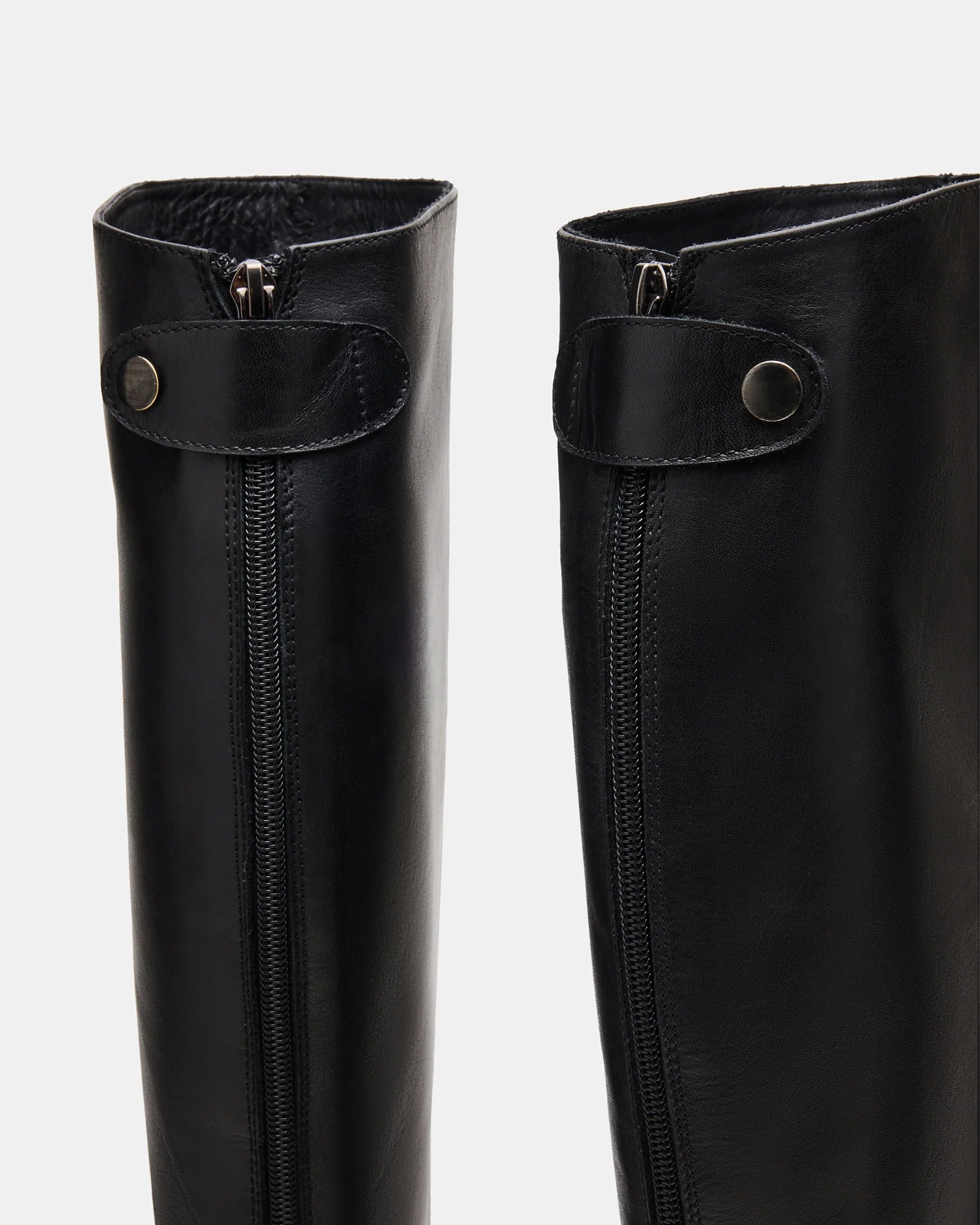 Expertly crafted, the BEREN BLACK LEATHER knee-high riding features a convenient back zipper for easy on and off. Made with high-quality materials, this boot is both stylish and functional, providing support and comfort for all-day wear. Perfect for any wardrobe, this boot is a must-have for any fashion-forward individual.