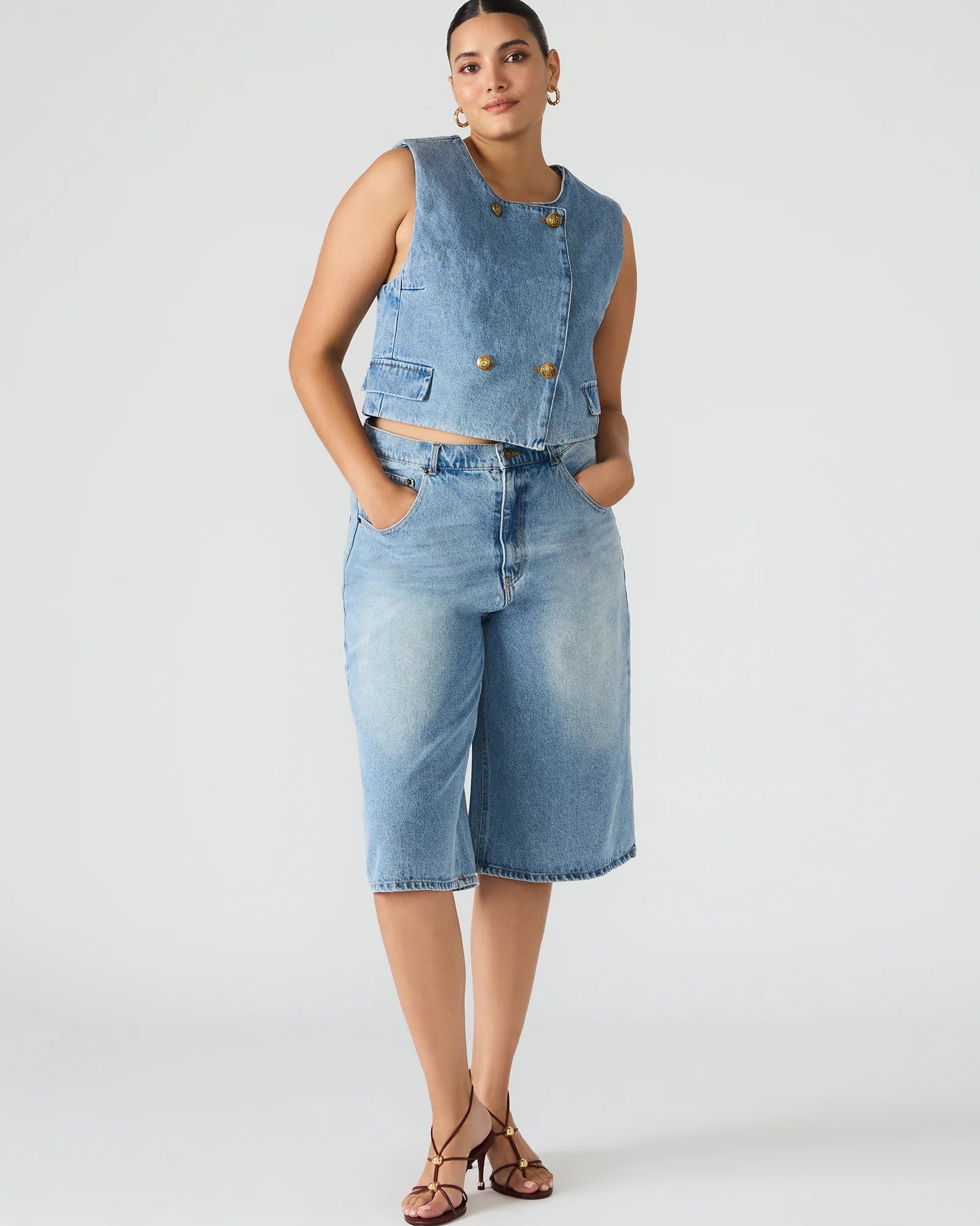 This BREA vest is crafted from premium denim, featuring precise button details and a secure button closure for a polished finish. Designed as part of a matching set, this vest top offers versatile layering options, combining classic style with modern edge for a refined, expert look.