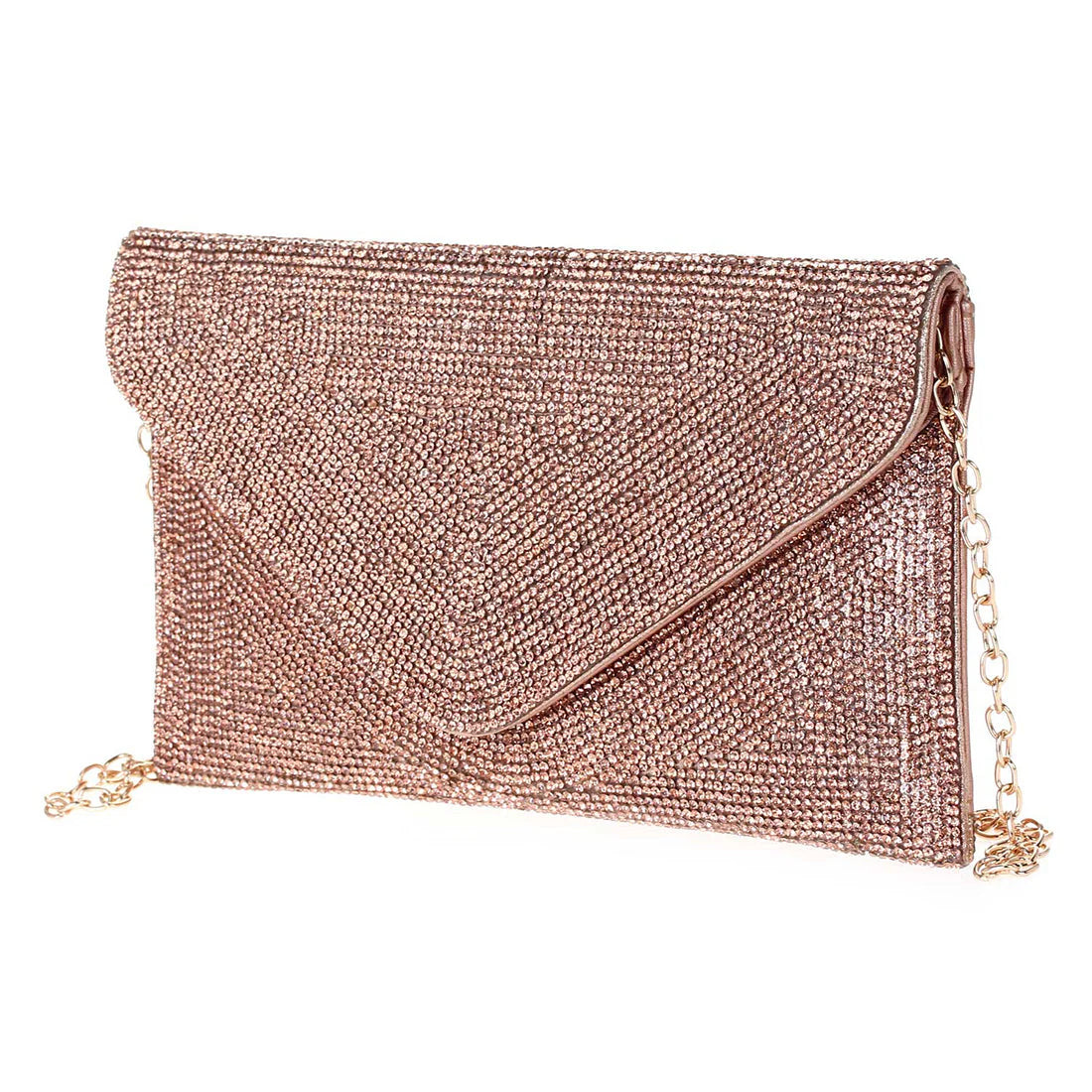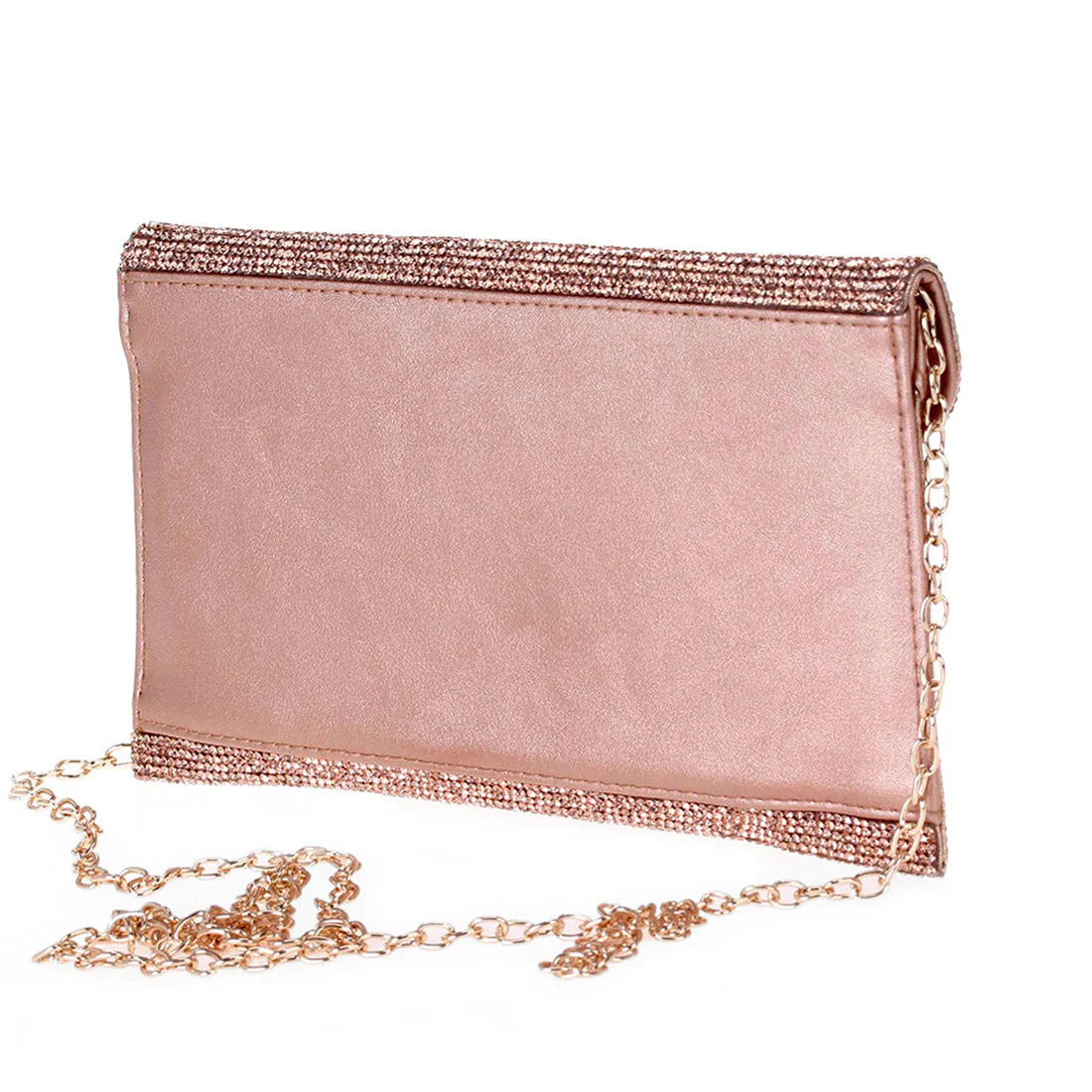 Tiny rhinestones blanket BSWAGGER’s face, transforming this otherwise simple envelope bag into a sparkling statement style. Rock this flashy new favorite as a crossbody, or tuck its delicate chain strap inside and carry as a clutch.