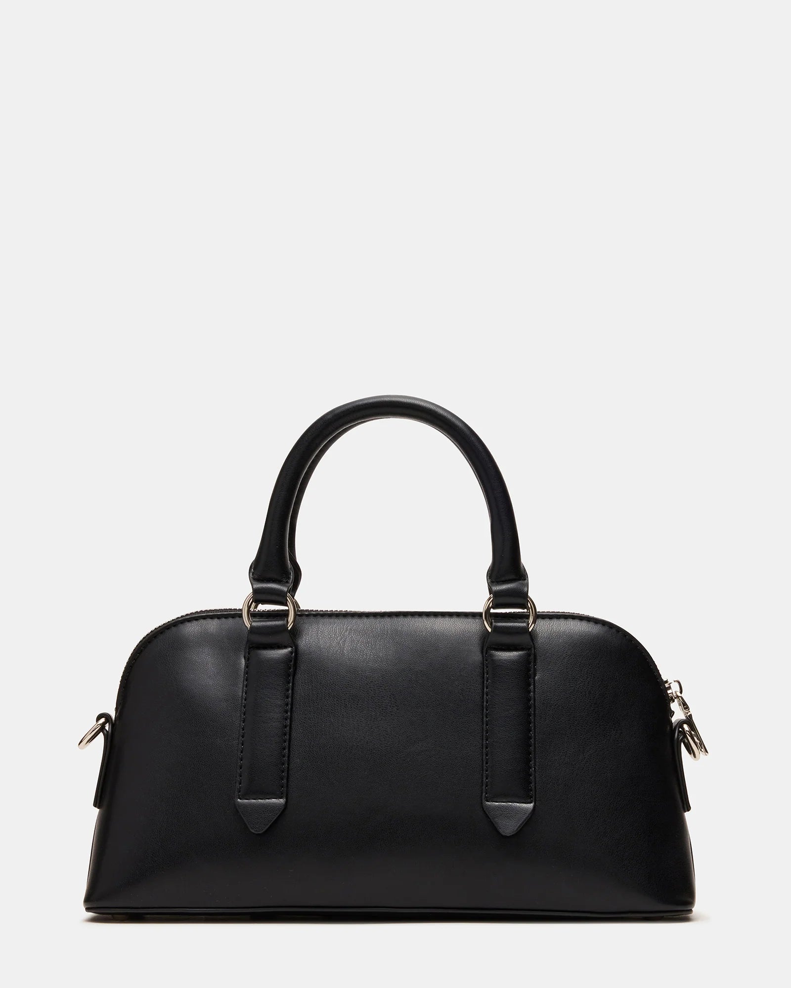 The CALLY BAG BLACK is a refined dome satchel designed for versatility and style. Featuring a structured top handle, this bag includes an attachable printed scarf, adding a personalized touch of sophistication. It also comes with an attachable card case and crossbody strap, providing convenient organization without compromising elegance. Ideal for both everyday use and special occasions, this satchel combines practical functionality with polished aesthetics.