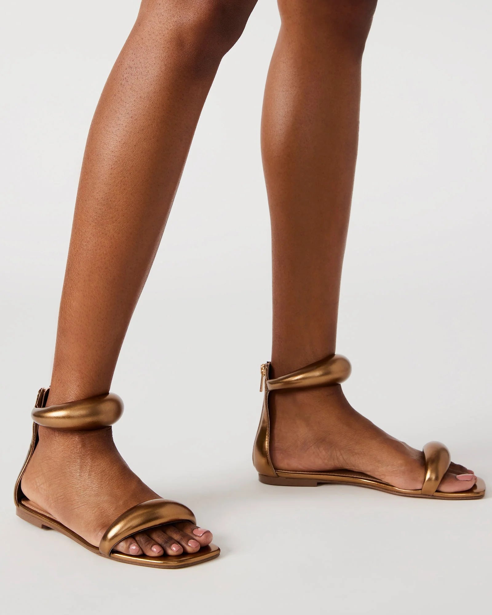 The CAPELLA secures an easy square toe flat sole with bubbled straps that add extra dimensionality to the look.