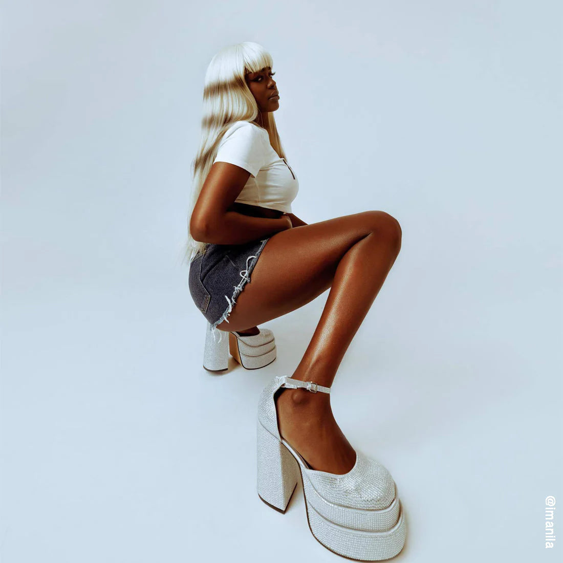 Demand attention when you walk into any room in CHARLIZE heels. A chunky double and sky-high block heel define these sandals, sure to give you major disco queen vibes.