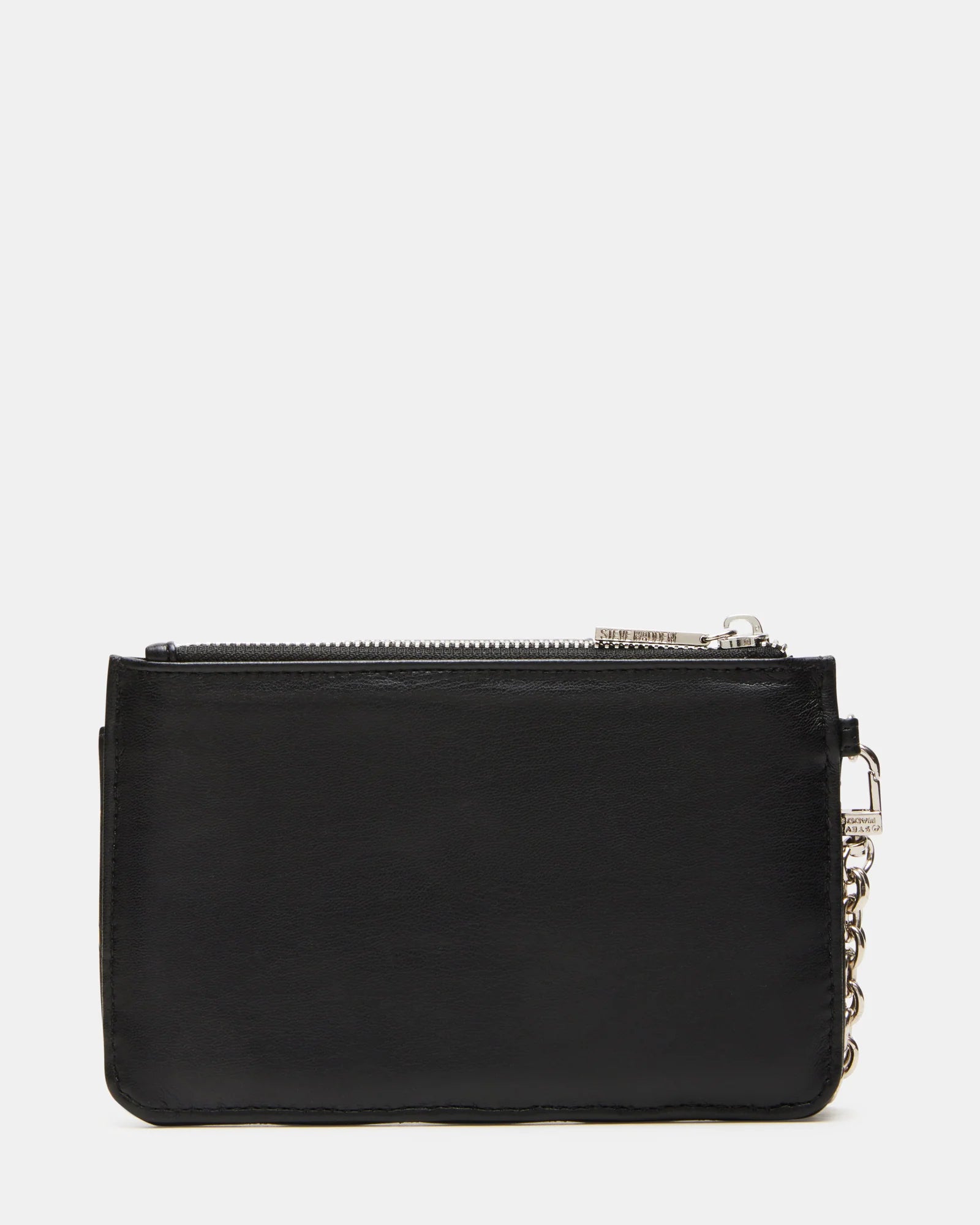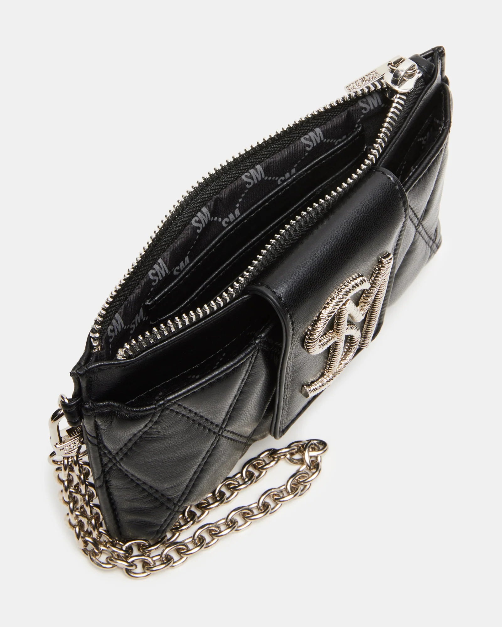 This CHEV2 wallet is a sophisticated and practical accessory. Featuring a quilted design in black, it offers a timeless and elegant look. The gold logo hardware and chain add a touch of luxury while keeping your belongings secure. Stay stylish and organized with this chic coin purse.