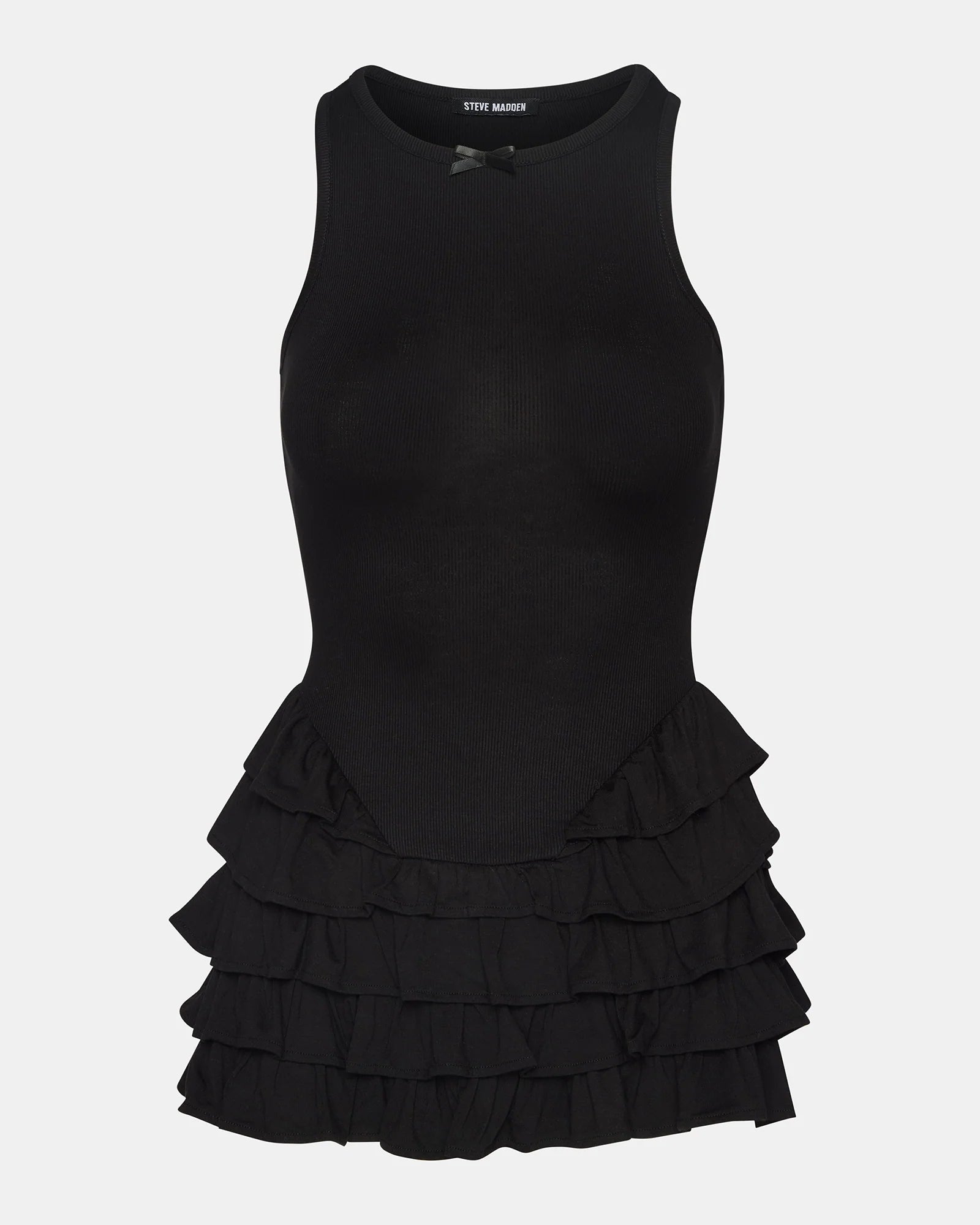 The CLEA is a versatile pull-over mini dress that boasts a charming ruffle bottom skirt. Designed for easy wear, this dress is perfect for any occasion. With its stylish silhouette and playful details, it offers a unique blend of comfort and fashion. Elevate your wardrobe with this must-have piece.