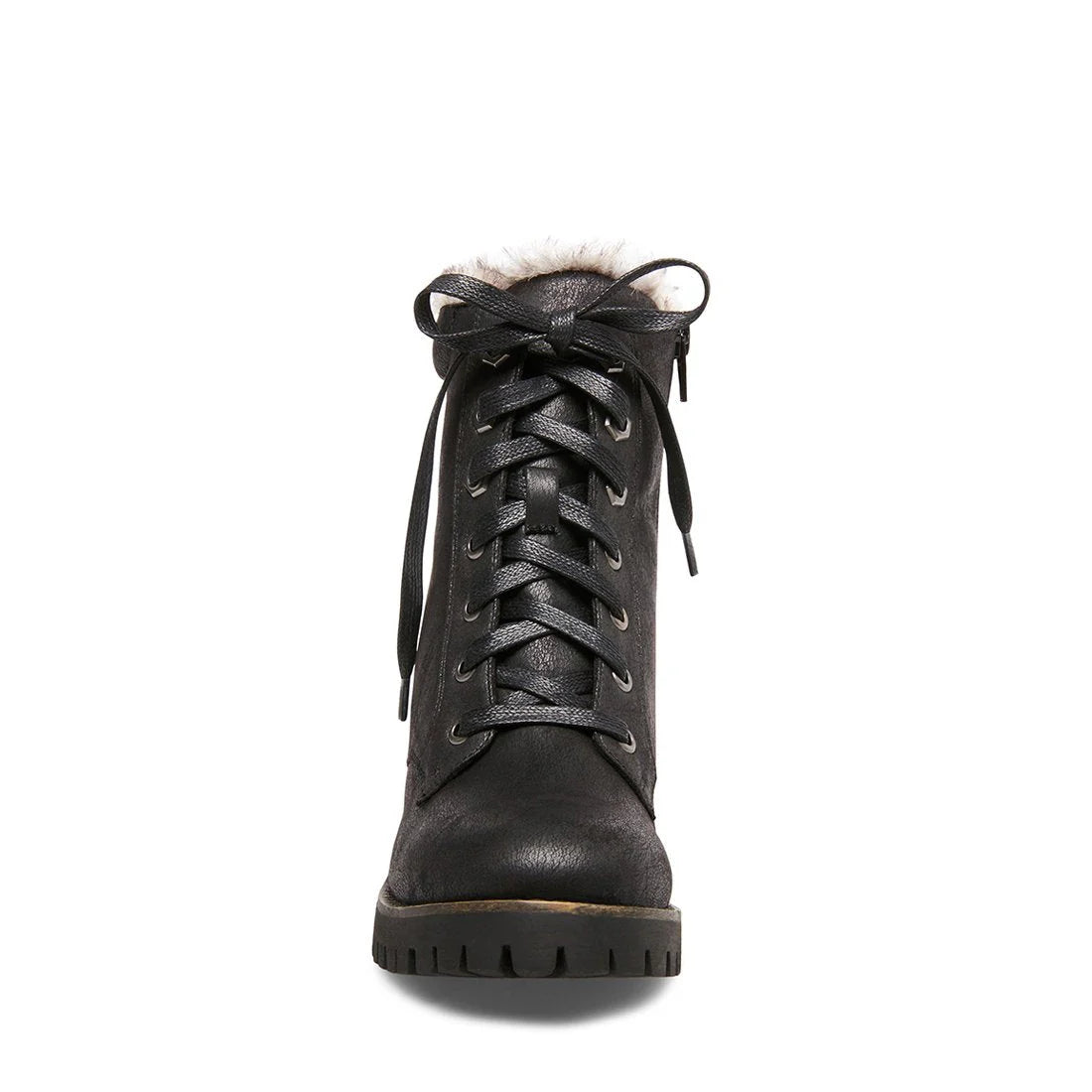 Elevate your look while treating your feet to COMFORT — a boot designed with both fashion and function in mind. This lug-soled lace-up is lined with faux fur for added warmth and boasts a medium block heel that lifts and supports.