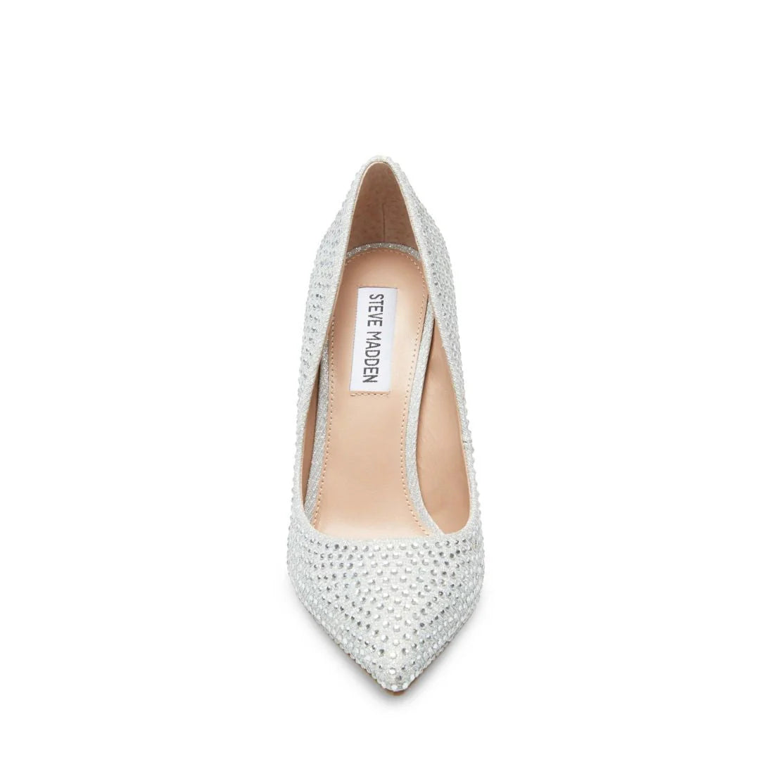 With sparkling surfaces and a seductive shape our DAISIE-R pump is just the shoe to rock when you want to be seen! A tall stiletto heel and pointed toe give this stunner an alluring silhouette, while allover rhinestone embellishment adds glamour and flash.