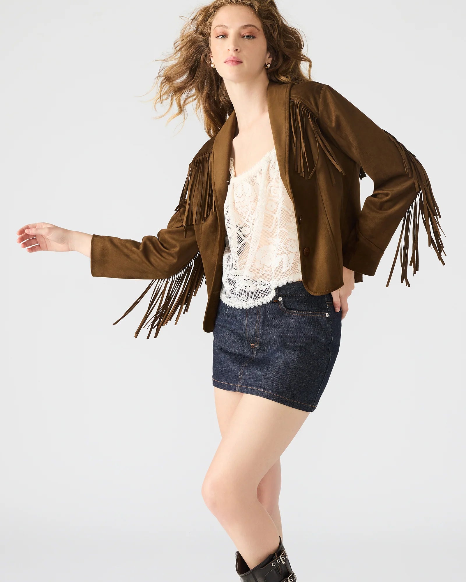 This long-sleeved DALLAS features a distinctive fringe design and collared neckline that adds texture and movement to its classic silhouette. Crafted for both style and comfort, it offers a refined layering option that elevates any outfit with a subtle Western-inspired edge. Ideal for transitional weather, this jacket combines timeless design with expert detailing.