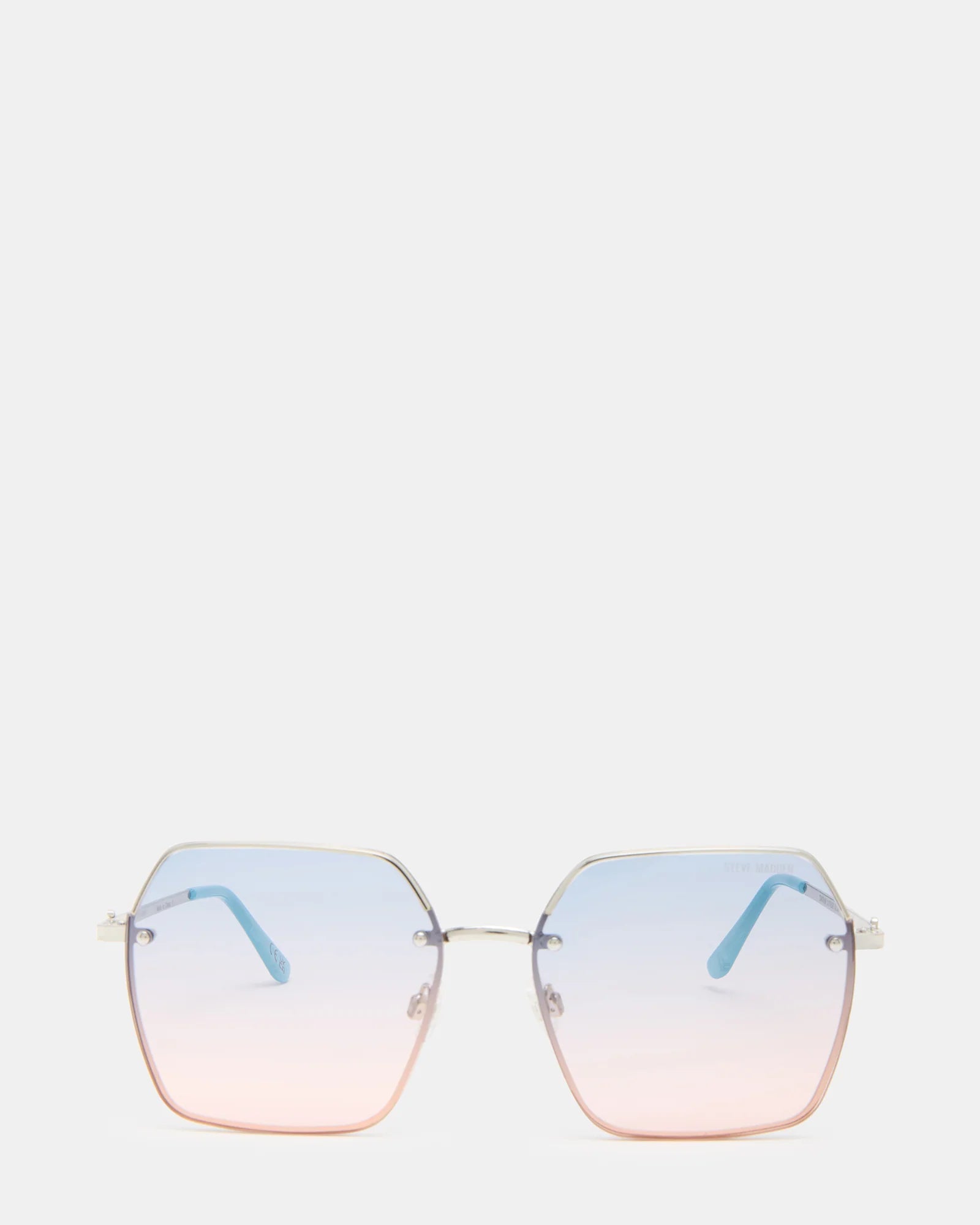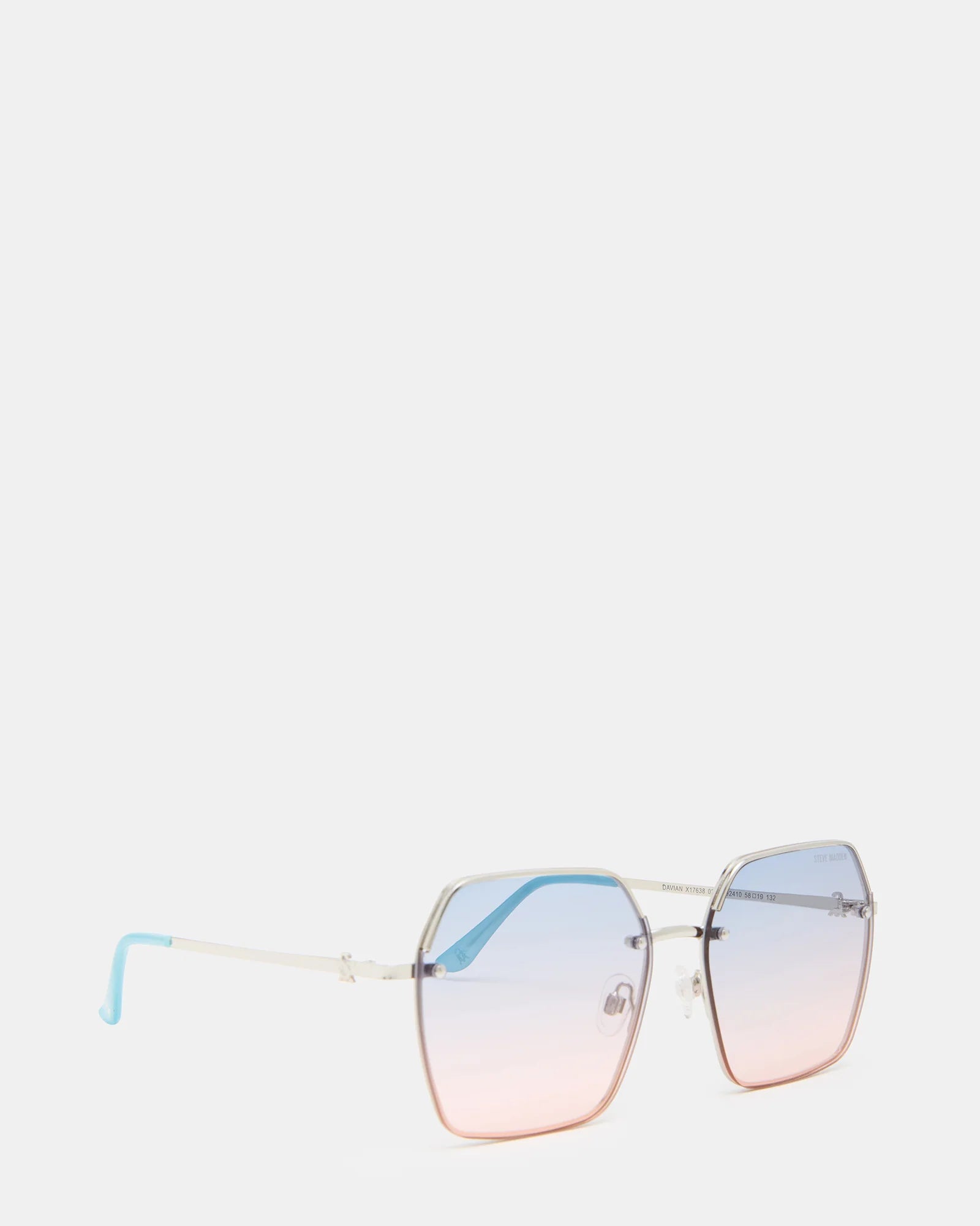 These DAVIAN sunglasses feature a shiny silver frame and a trendy blue to pink gradient lens color. As a stylish and functional , they offer both clear vision and UV protection. Perfect for any fashion-forward individual looking to make a statement.