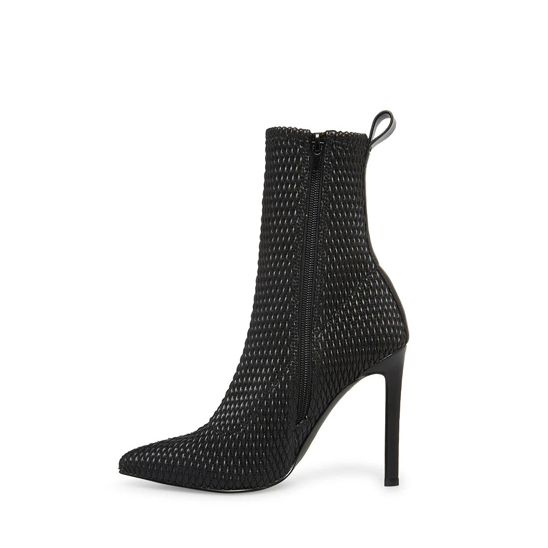Sheer fishnet gives the DAZE ankle visual texture and a defined fit around the ankle, while the stiletto and point toe give them a sleek, elongated look.