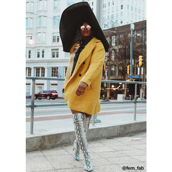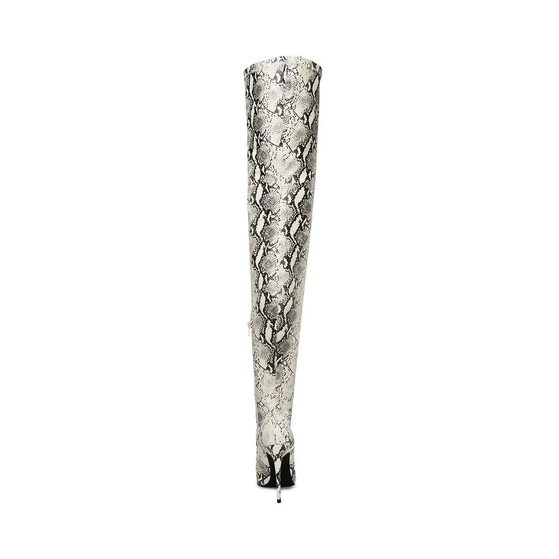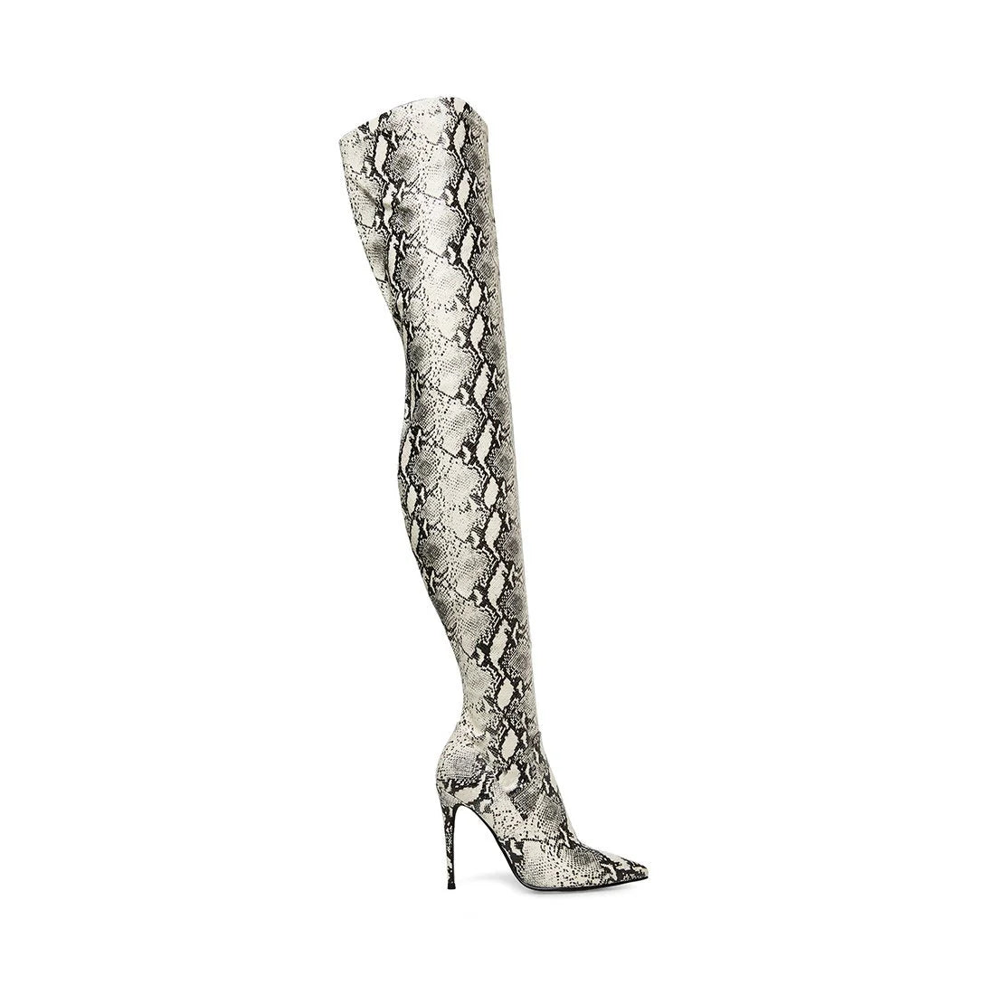 Call attention to your lovely lower limbs this season with DOMINIQUE! This sexy statement boot boasts a daring thigh-high shaft and extra-tall stiletto heel for a leggy look that’s sure to turn heads!