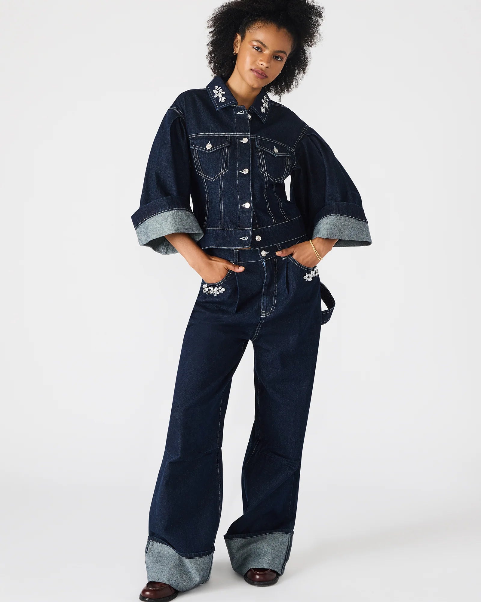 This DOROTHY BIJOU BLUE denim button-up features a refined embellished collar that adds a sophisticated touch to its classic design. Crafted for versatility, it offers a polished yet casual look, making it ideal for layering in transitional seasons. Durable denim ensures lasting wear, while the decorative neckline elevates your outfit with subtle elegance.