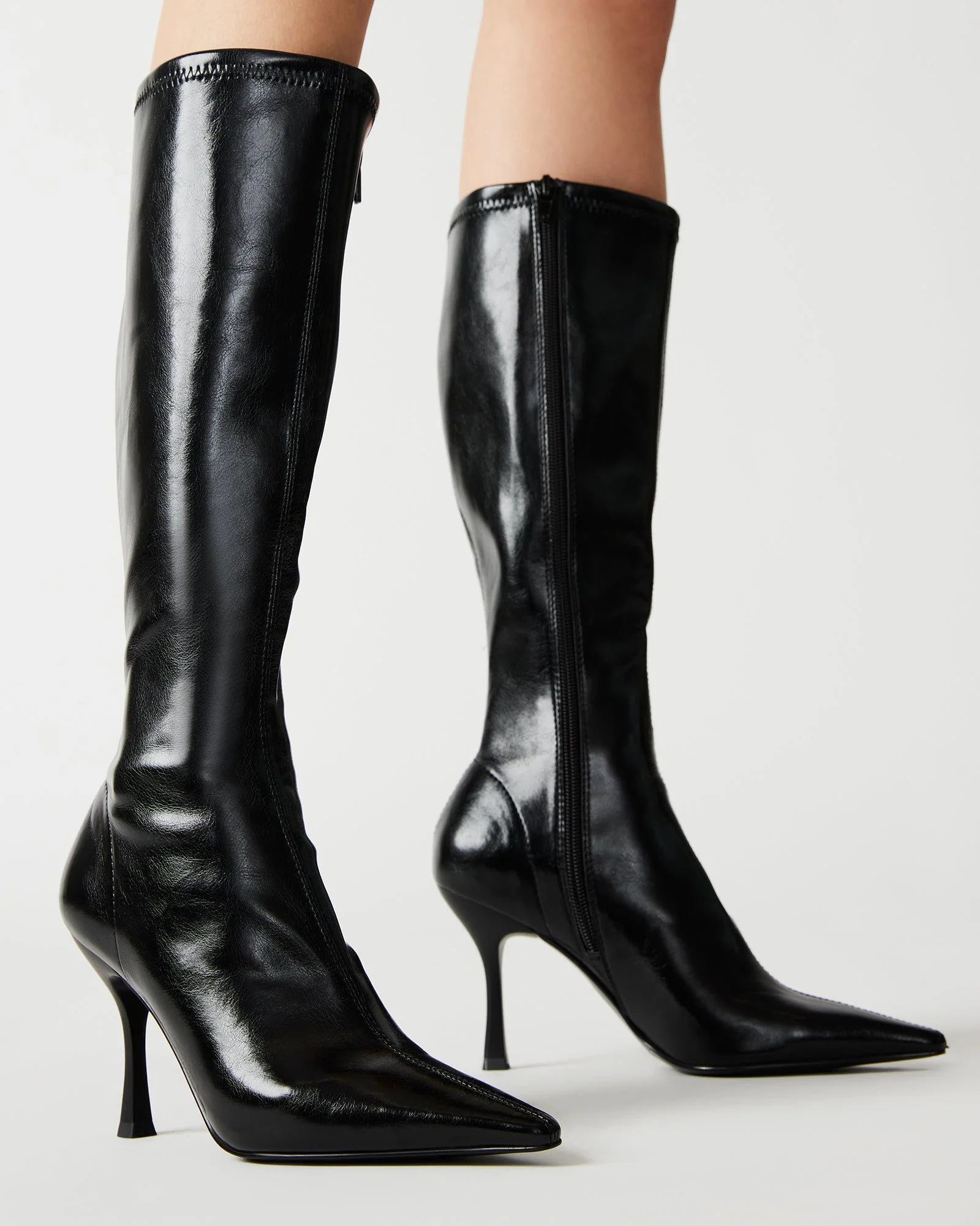 The DREA knee is a fitted design with a curvaceous stiletto heel and a pointed toe adding to the defined and lengthened look.