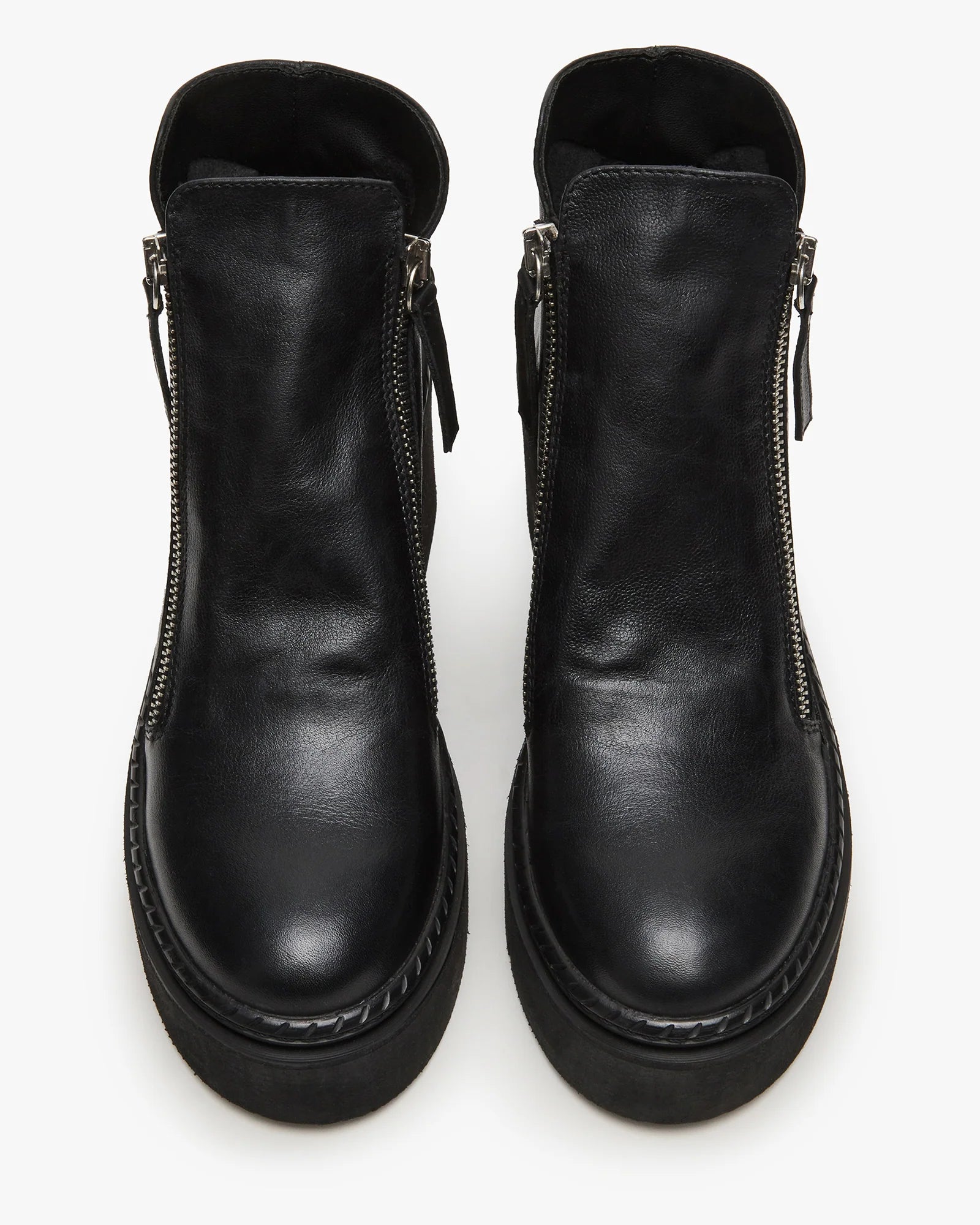 The DRIFT ankle boot combines rugged, moto-inspired style with refined craftsmanship. Featuring a distinctive platform sole and a unique zipper design, this offers both bold aesthetics and easy wearability. Crafted from premium materials, it delivers durability and a sleek finish, making it a versatile choice for elevating your footwear collection with an expert edge.