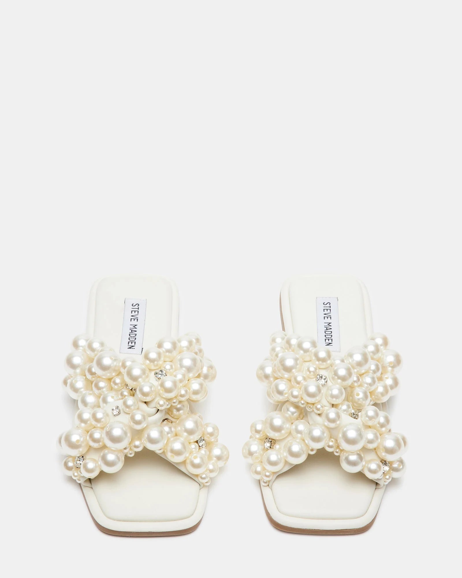 A flat slide, the DURI is heavily embellished over its two crossed straps and finished with a square toe.