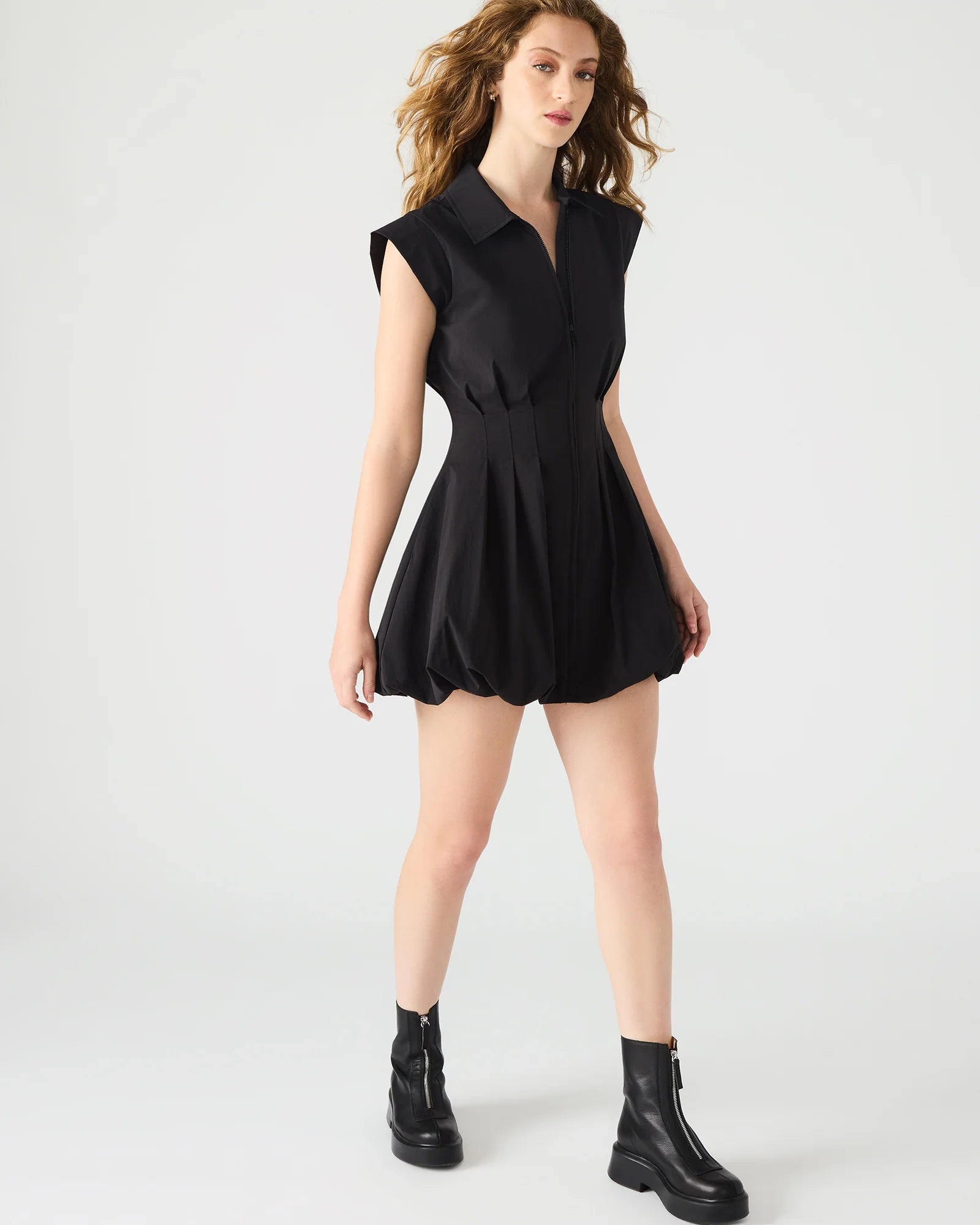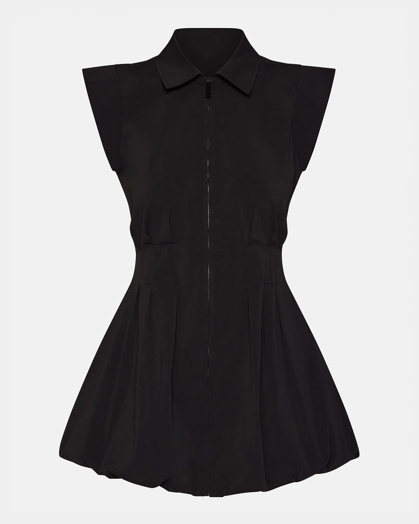 The DYANNE is a stylish mini dress featuring a zip front and bubble hem in tech nylon. With a collared neckline, this dress is perfect for any occasion and provides a modern, chic look. Made with high-quality materials, it offers both comfort and durability. Get ready to turn heads and stand out in this must-have dress.