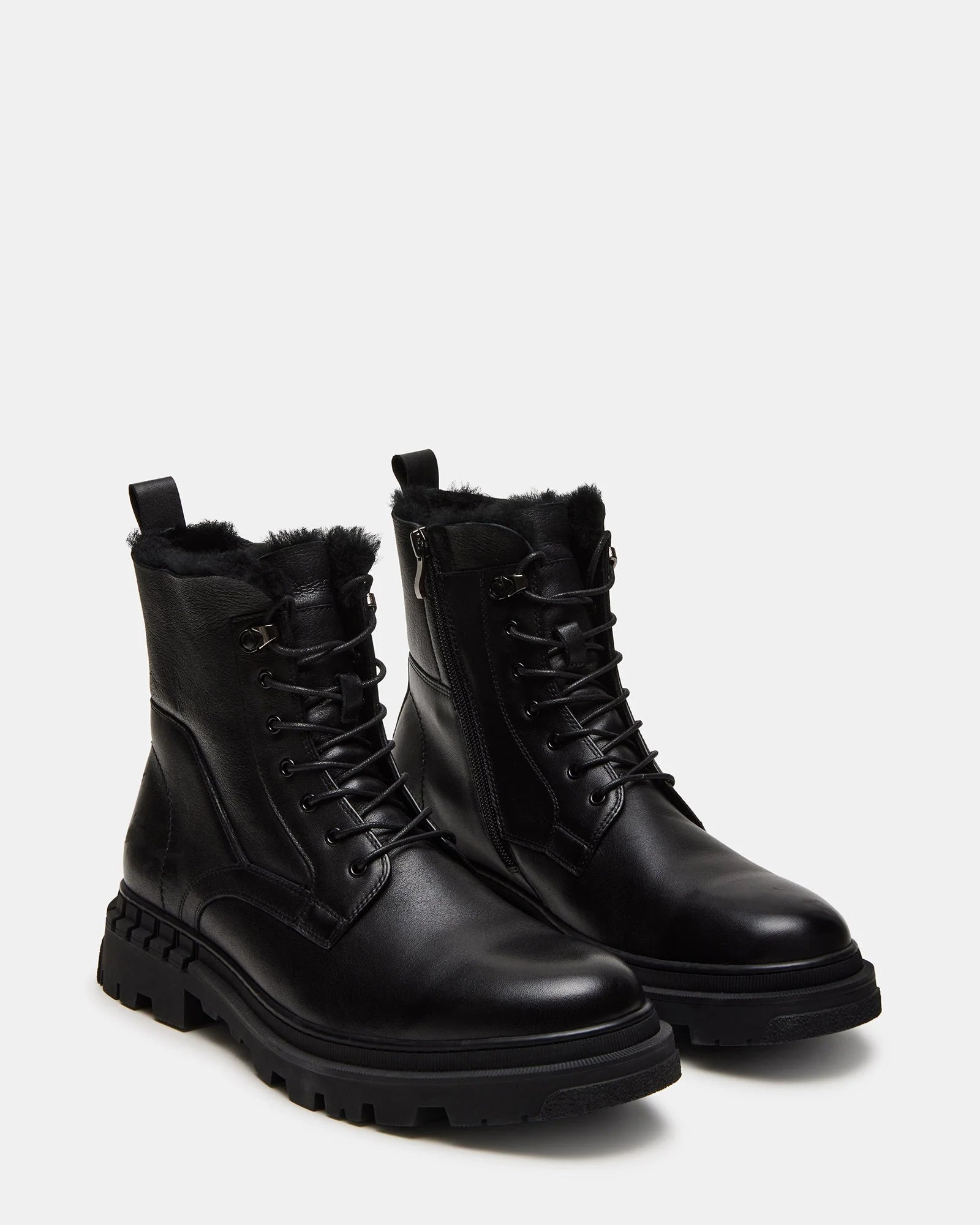 Expertly crafted with a leather upper and faux fur lining, the EISEN ankle combines style and practicality. Featuring a sturdy lug sole, inside zip, and lace-up construction, these boots offer both comfort and functionality. The pull tab provides easy on-and-off access, making them a must-have for any fashion-forward wardrobe.