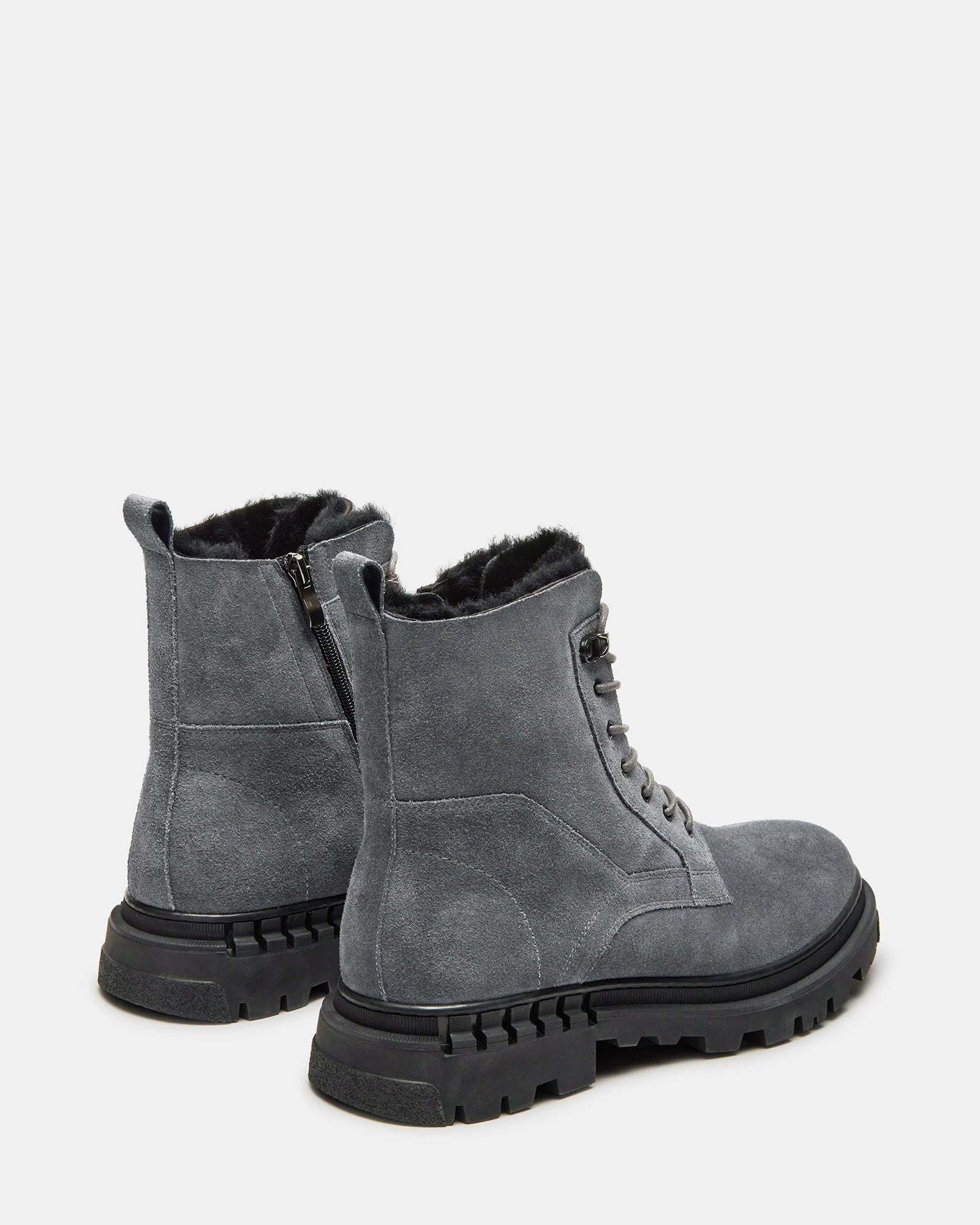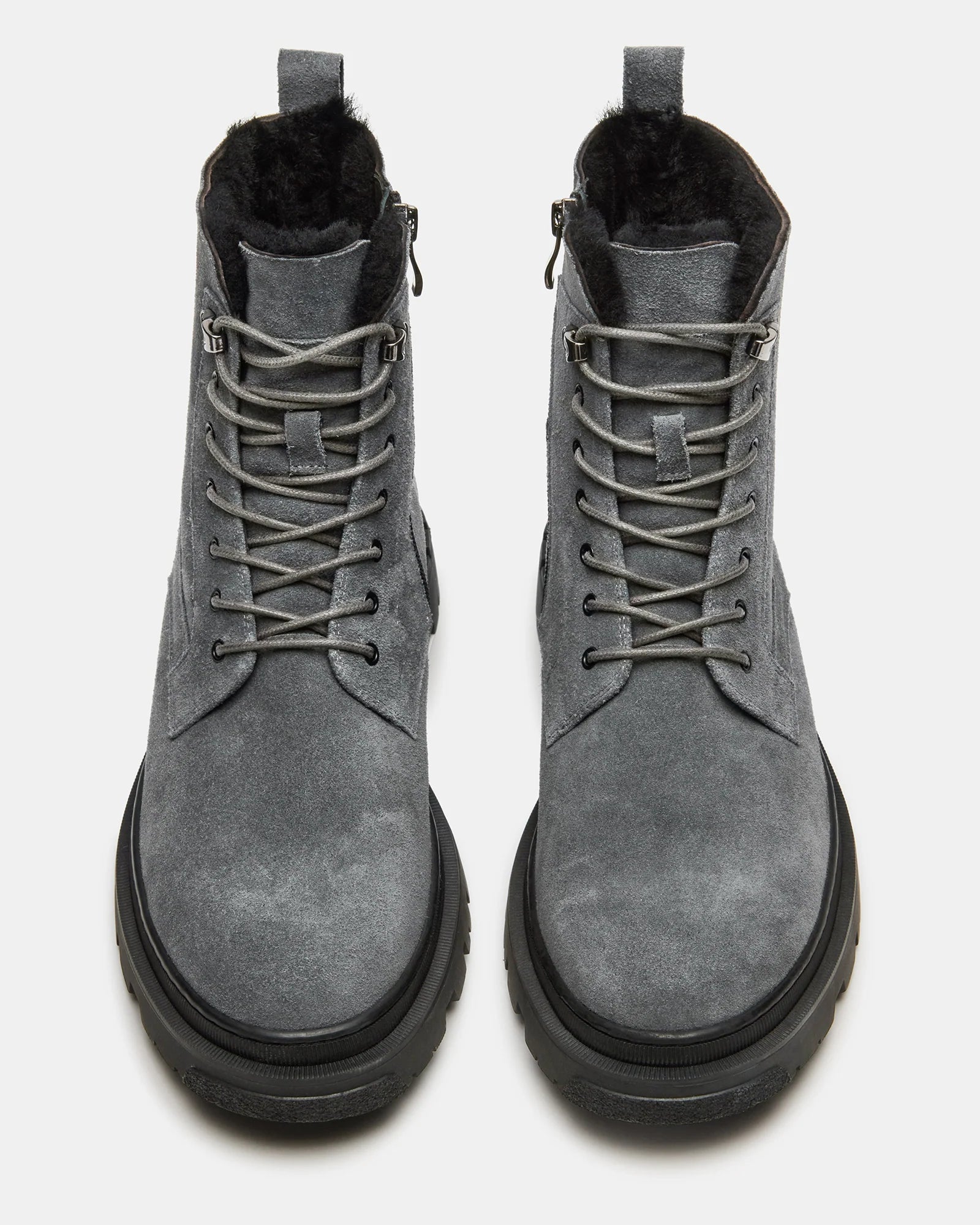 Expertly crafted with a suede upper and faux fur lining, the EISEN ankle combines style and practicality. Featuring a sturdy lug sole, inside zip, and lace-up construction, these boots offer both comfort and functionality. The pull tab provides easy on-and-off access, making them a must-have for any fashion-forward wardrobe.