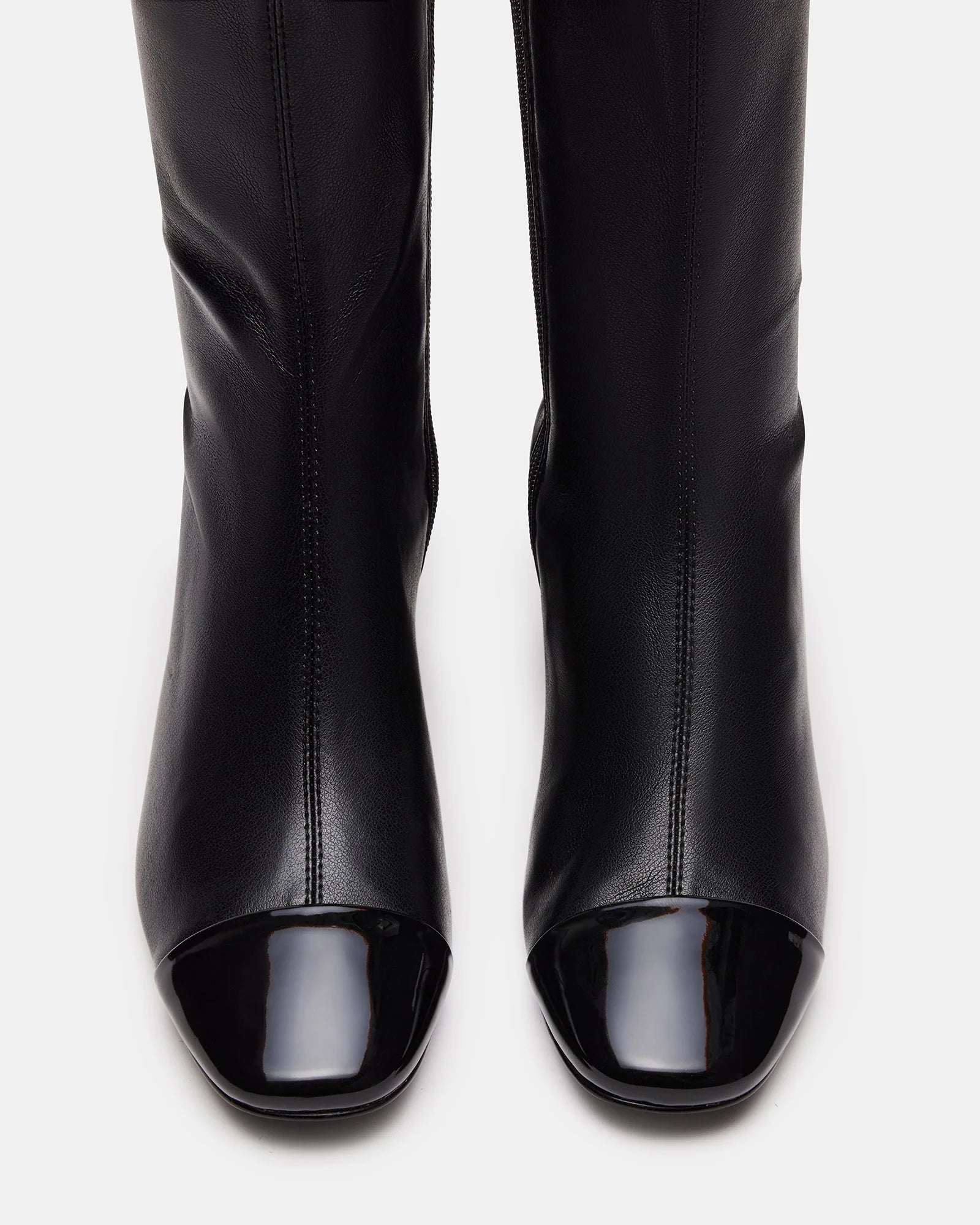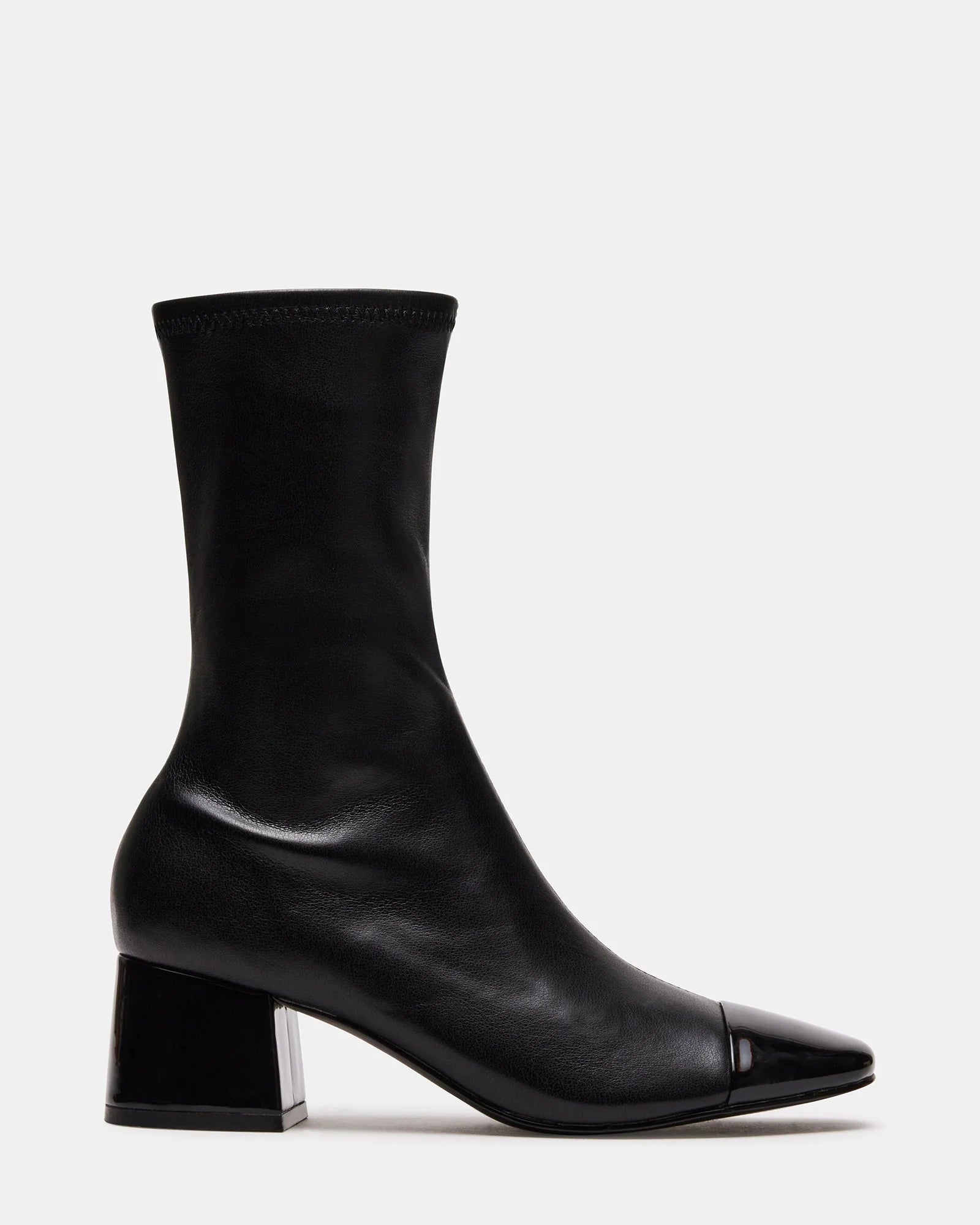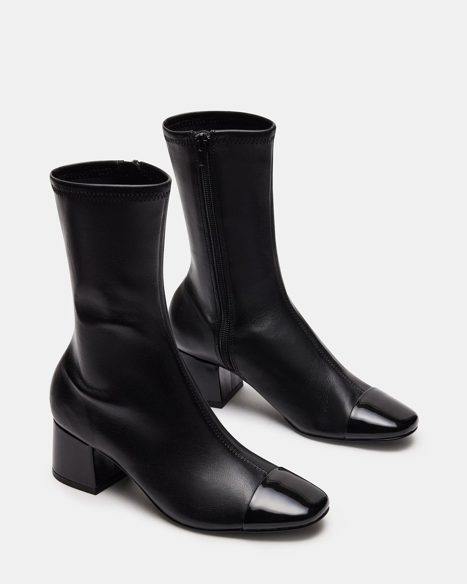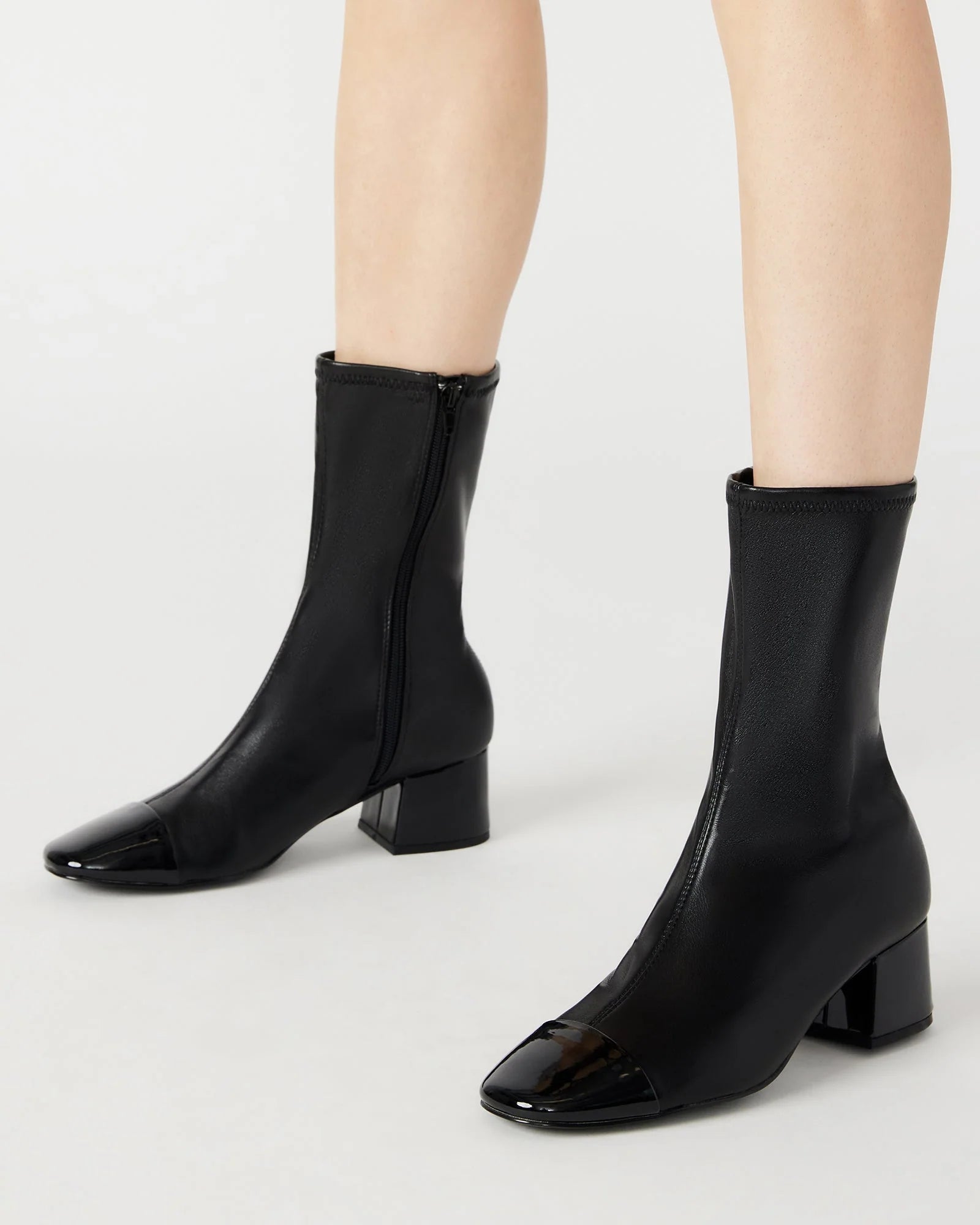 The ELISHA is a mid-calf design with a defined silhouette, finished with a matching block heel and a contrasting toe cap.