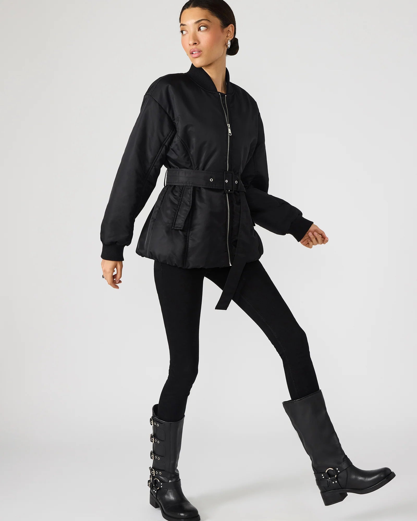 Elevate your cold-weather wardrobe with the ERYN , a sleek, long-sleeved zip-up puff jacket designed for both warmth and style. Its belted silhouette provides a tailored fit that enhances your shape while locking in heat. Crafted for expert performance, this jacket combines functional insulation with refined detailing, making it an essential outer layer for chilly days without compromising on sophistication.