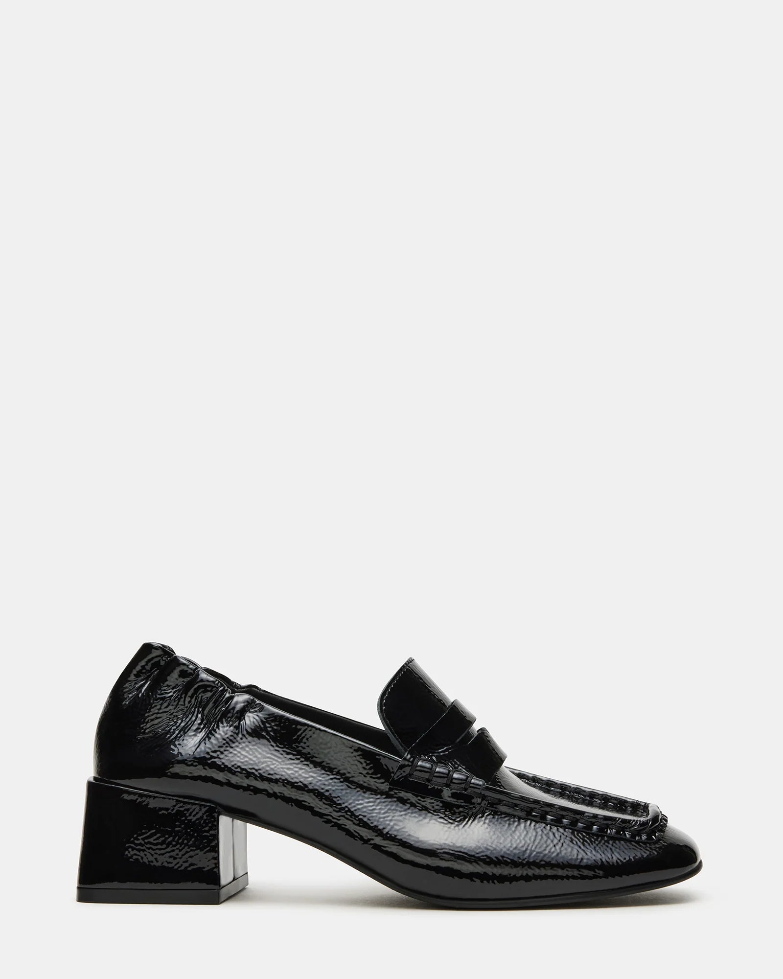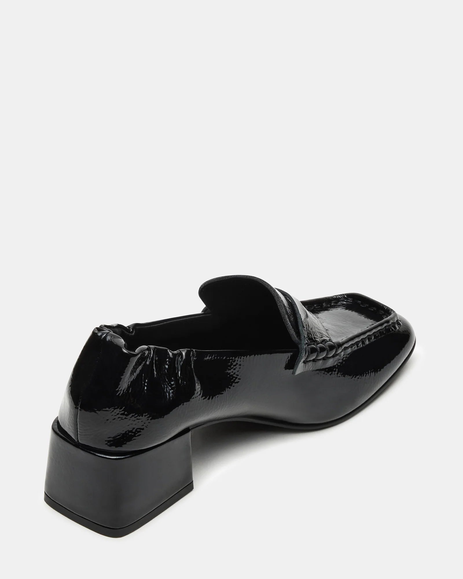 The ESTEE BLACK CRINKLE PATENT features a refined heeled square-toe design, combining contemporary style with expert craftsmanship. Its crinkle patent finish adds a subtle texture, while the structured heel provides both elegance and support. This loafer is ideal for professionals seeking a sophisticated yet comfortable shoe that enhances any outfit with a modern edge.