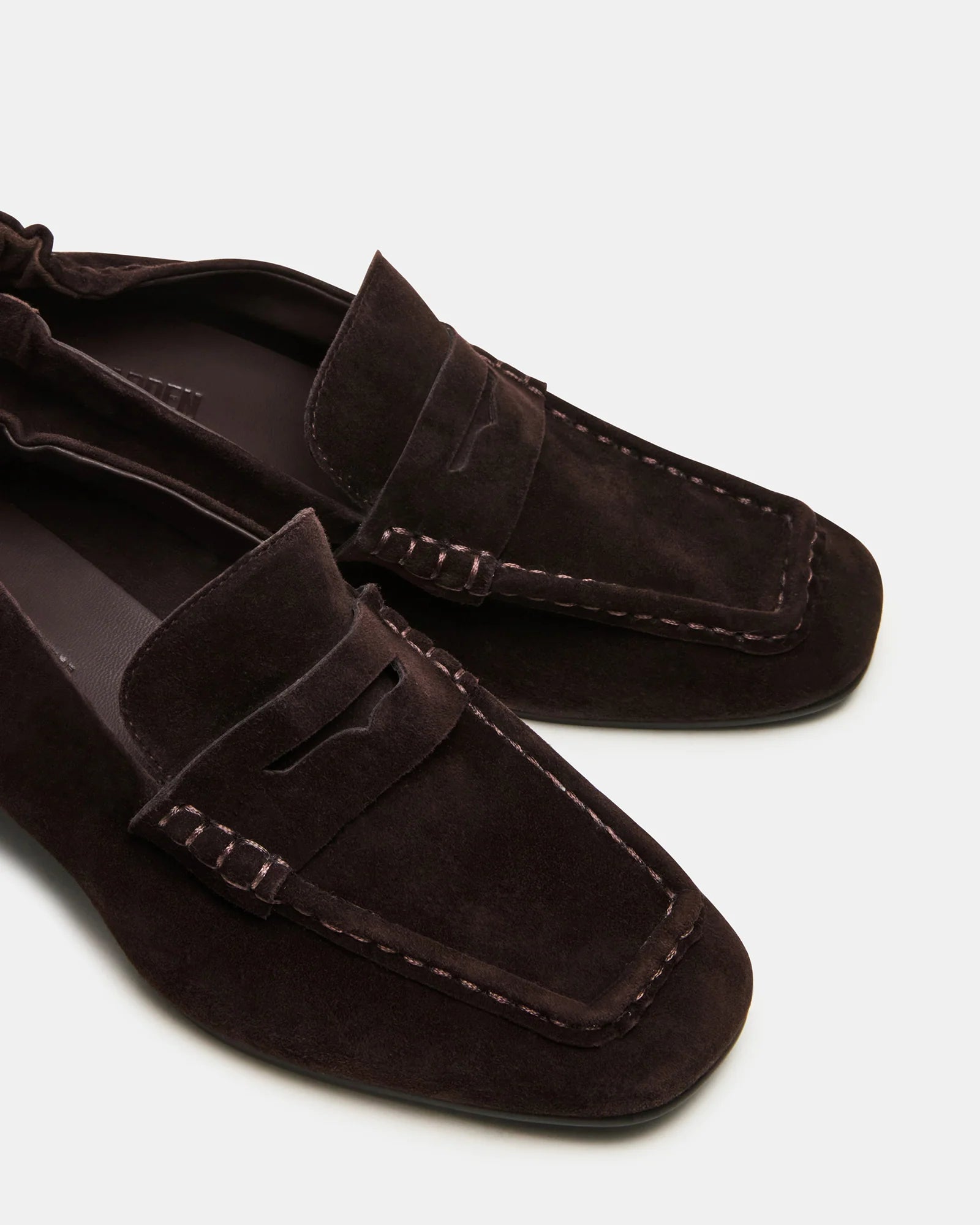 The ESTEE BROWN SUEDE features a refined heeled square-toe design, combining contemporary style with expert craftsmanship. Its suede finish adds a subtle texture, while the structured heel provides both elegance and support. This loafer is ideal for professionals seeking a sophisticated yet comfortable shoe that enhances any outfit with a modern edge.