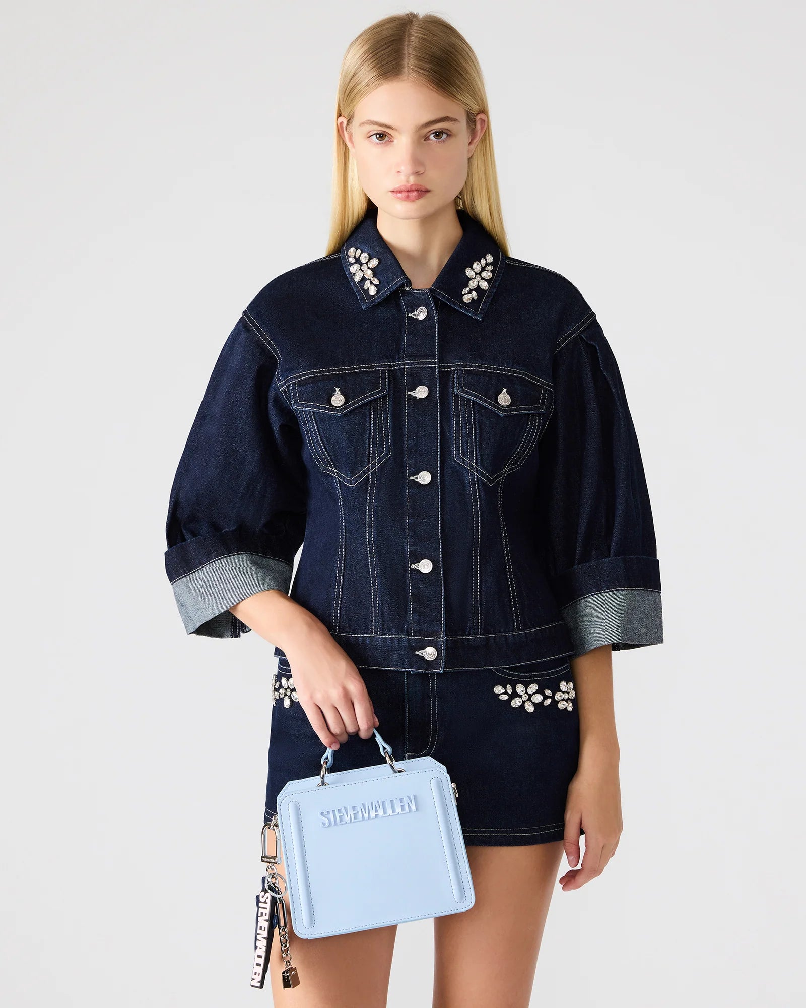 The EVELYN CHARM BOX GIFT SET LIGHT BLUE includes the classic Evelyn bag, designed for versatile wear with both top-handle and crossbody options. This set features an attachable charm with a chain link, adorned by a bear figure and the brand’s logo, adding a playful yet sophisticated touch. Complementing the look is a solid color scarf, perfect for styling in multiple ways. This curated collection blends classic elegance with contemporary accents for a polished, expert finish.