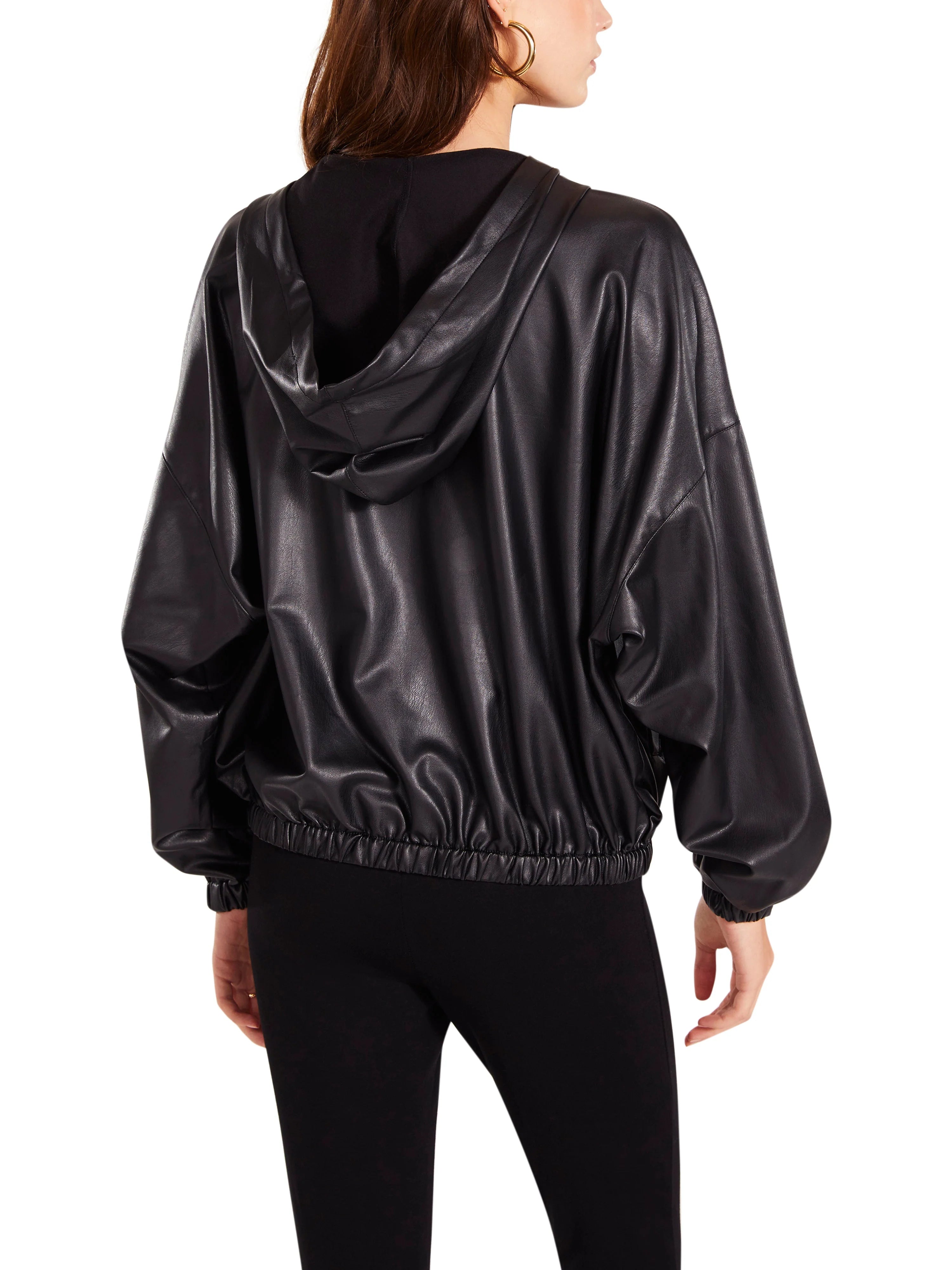 Leave them on read in the The Faux Chill Hoodie. It's a vegan leather hoodie with a front zipper and relaxed fit. Layer this cool look with the matching sexy Faux Chill Top and retro Faux Chill Bike Short.