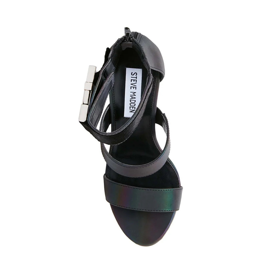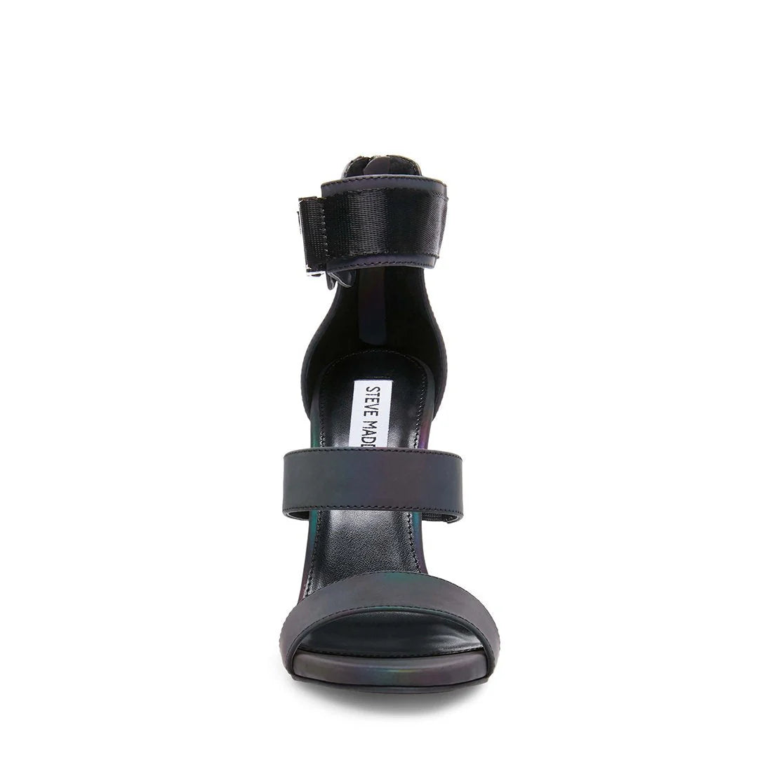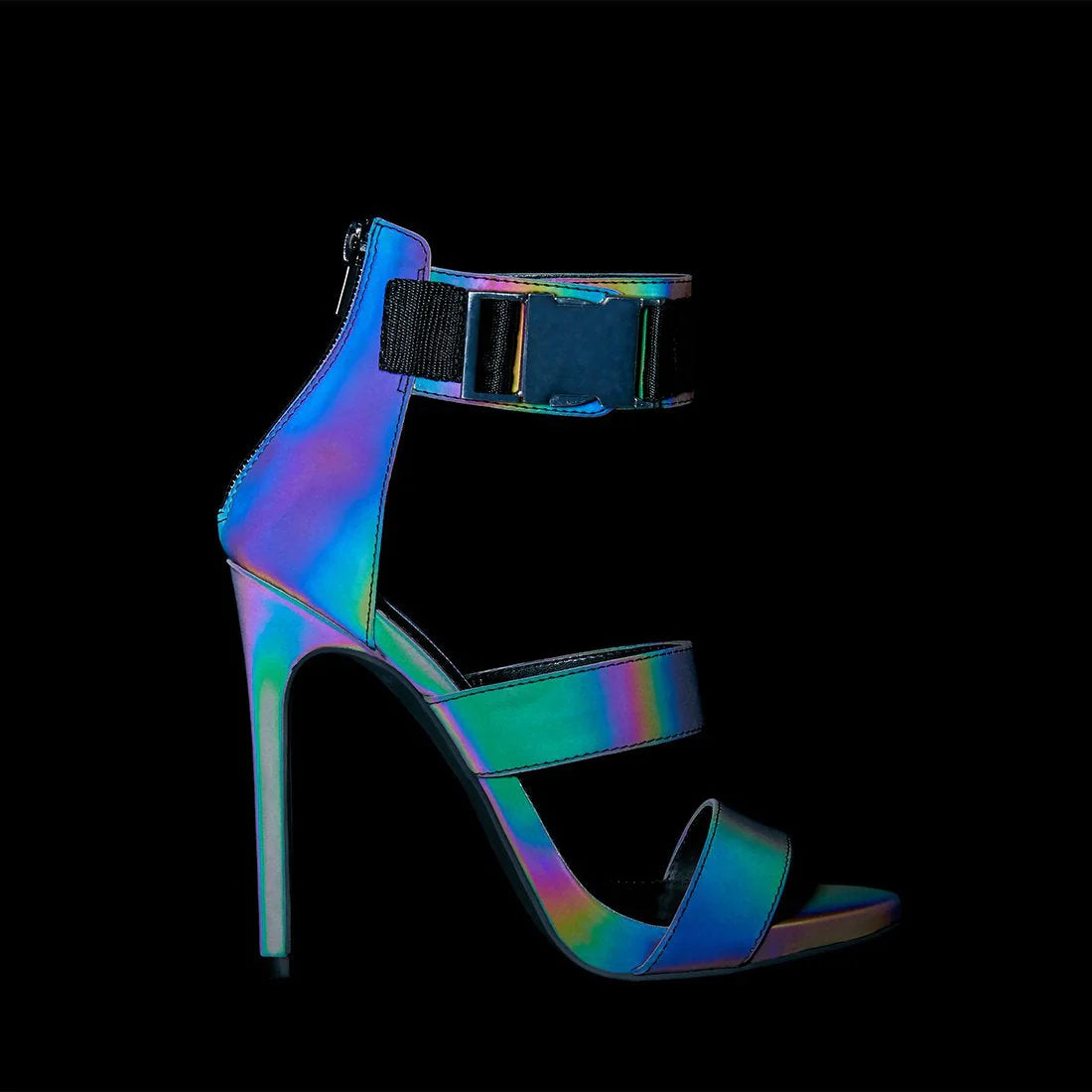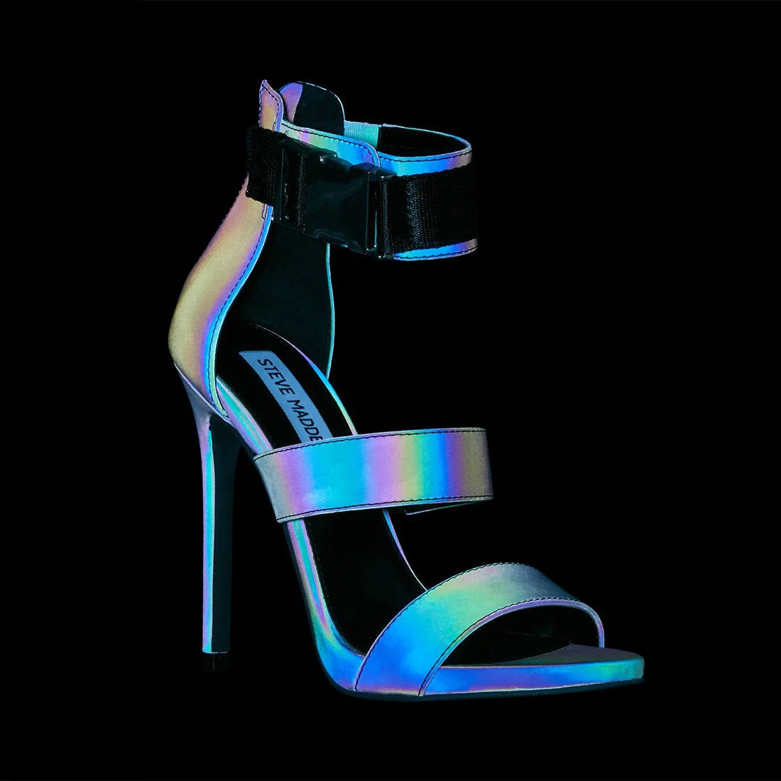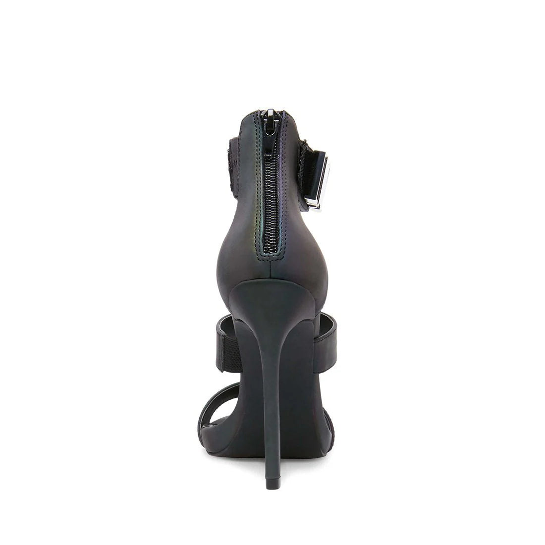 With a major stiletto heel and a trio of straps, FELICE provides lots of lift and is rich in sex appeal. A side release buckle accents at the ankle, adding sporty detail and utility.