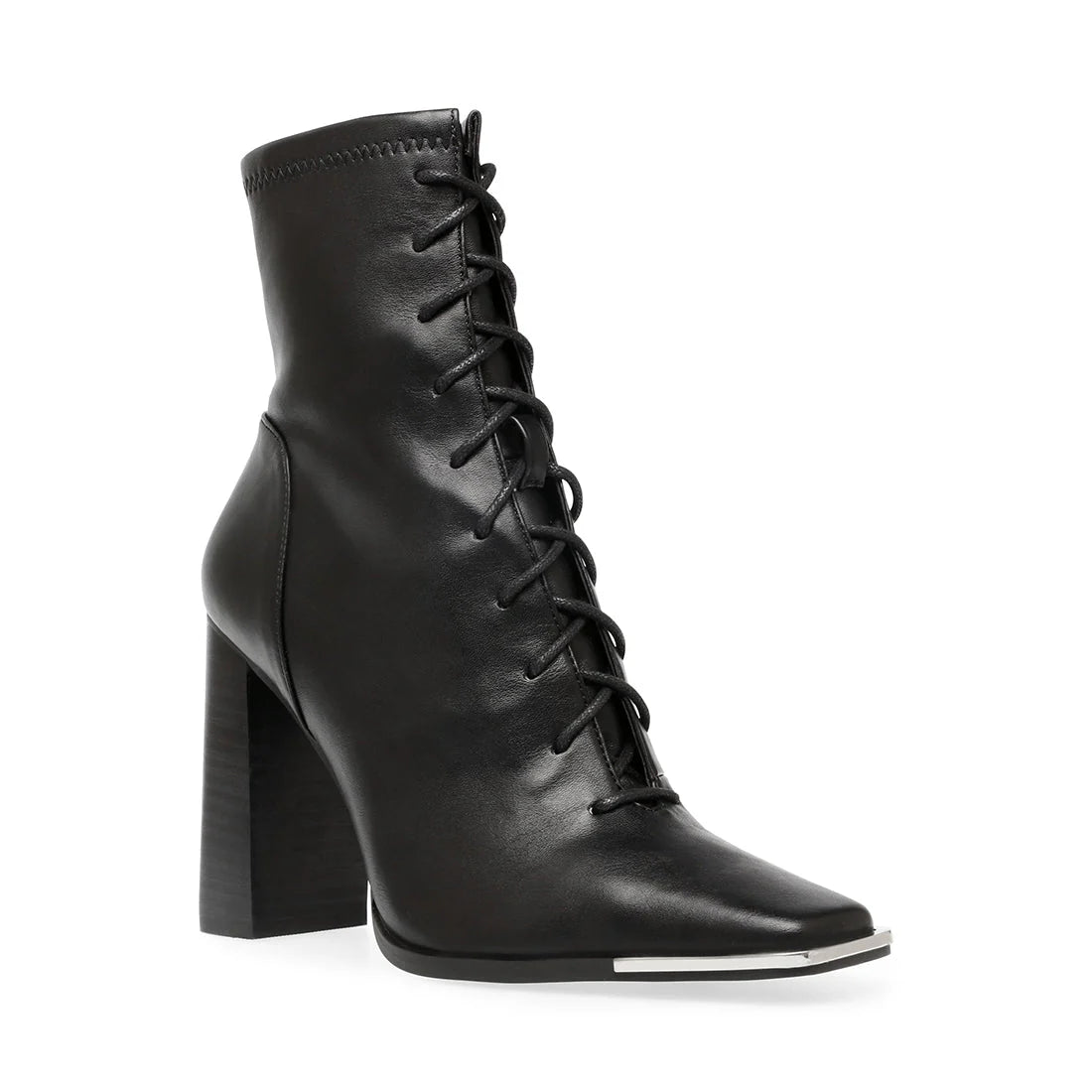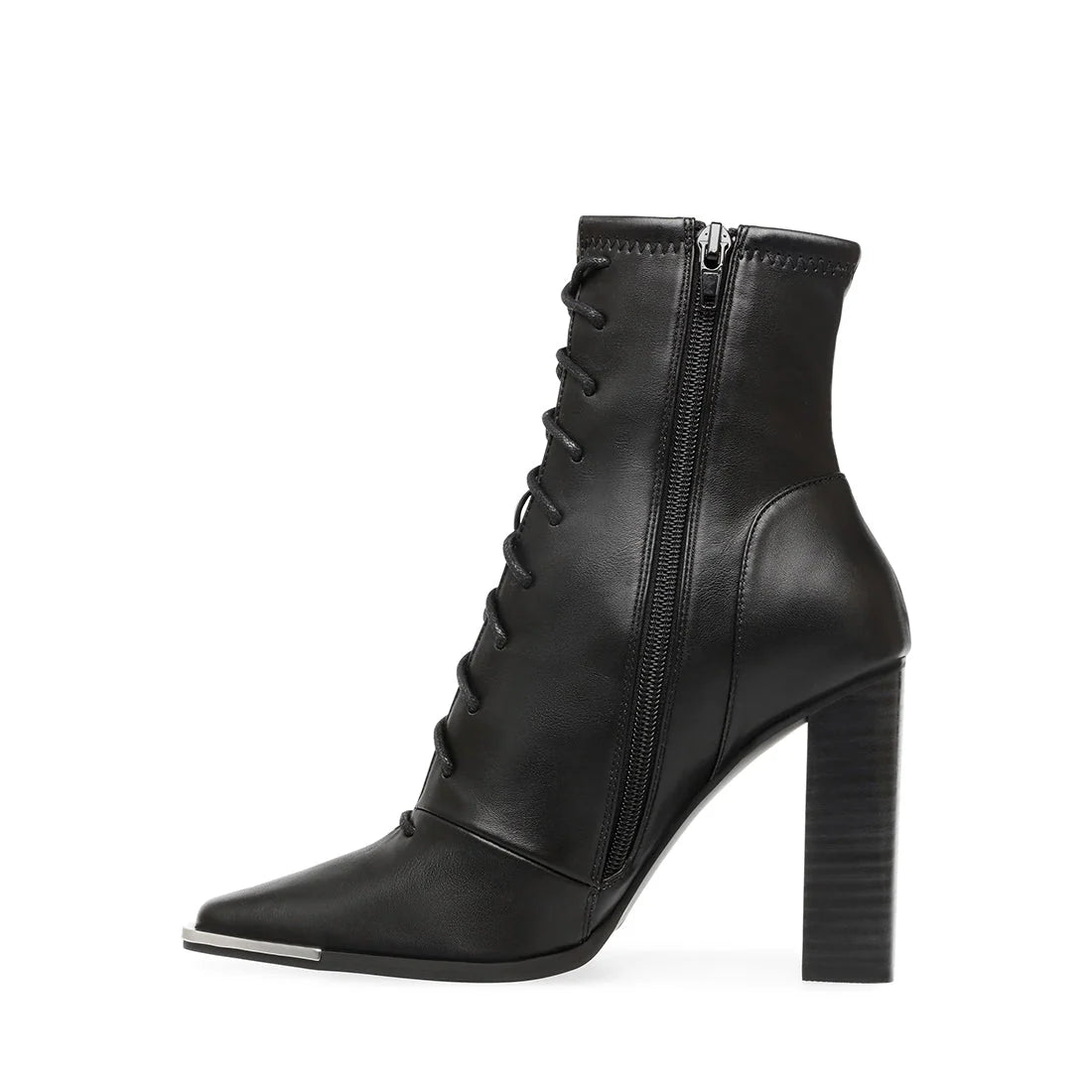 Lace yourself into FRANNY and start the day in style! This bootie’s sky-high stacked heel offers a major boost, while an angular metal-trimmed toe polishes the look.