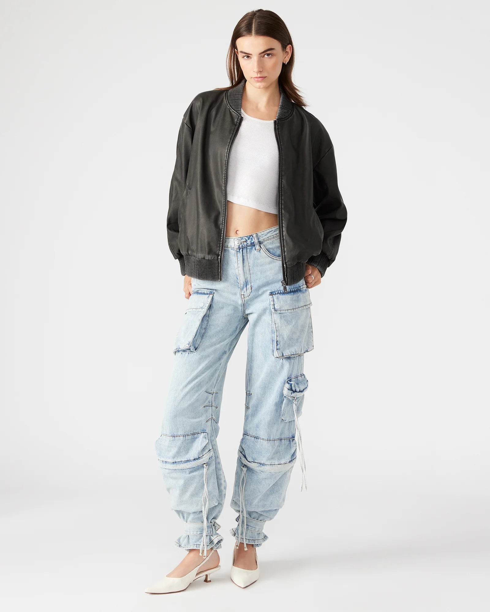 Elevate your outerwear game with the FYRA . This washed bomber jacket features a zip front closure, 2 functional front pockets, and a fully lined interior for added comfort. With its oversized fit, this jacket exudes effortless style and sophistication. Upgrade your look with this versatile jacket.