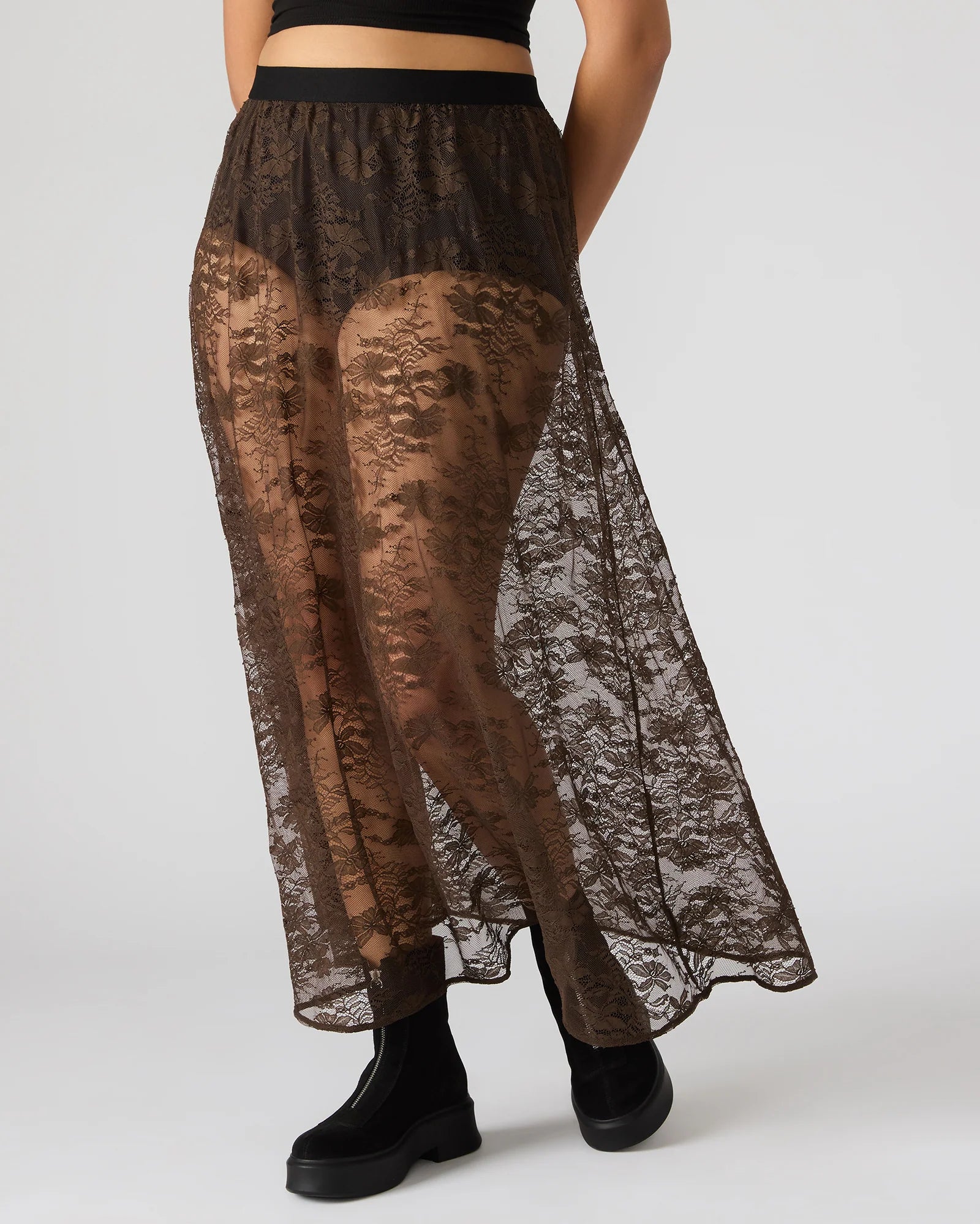 Elevate your wardrobe with the GISELA , a maxi-length sheer lace skirt that combines elegance with modern sophistication. Crafted from delicate lace, it offers a lightweight, breathable feel while showcasing intricate patterns that add texture and depth.