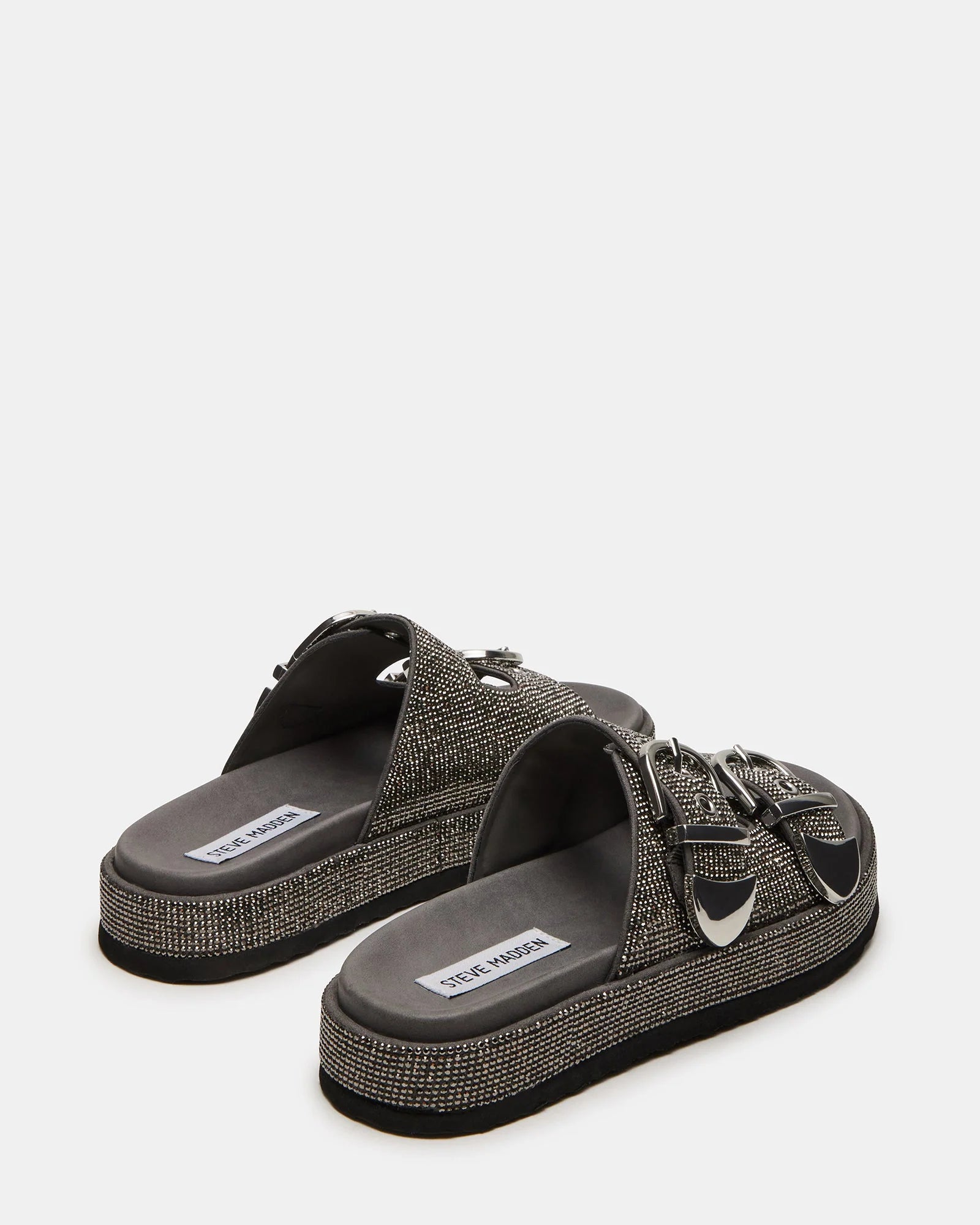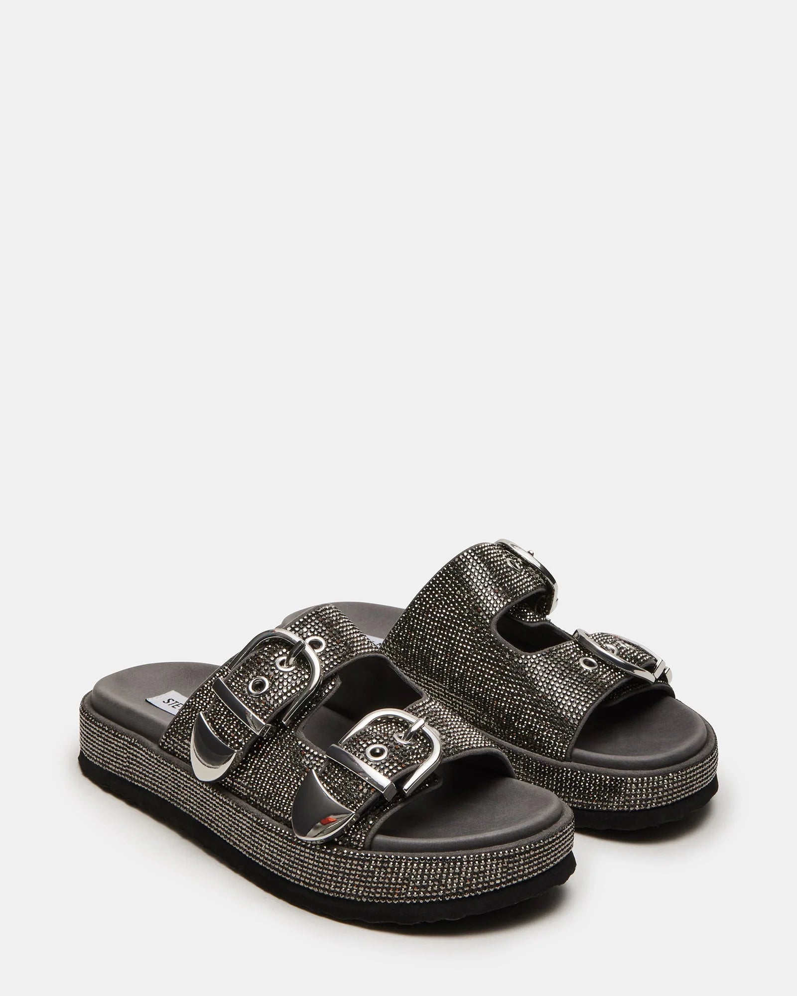 Let your feet sparkle with GLISTEN! These footbed feature glitzy rhinestones and buckle details, perfect for adding some dazzle to your outfit. Slip into these and elevate your style with a platform sole.
