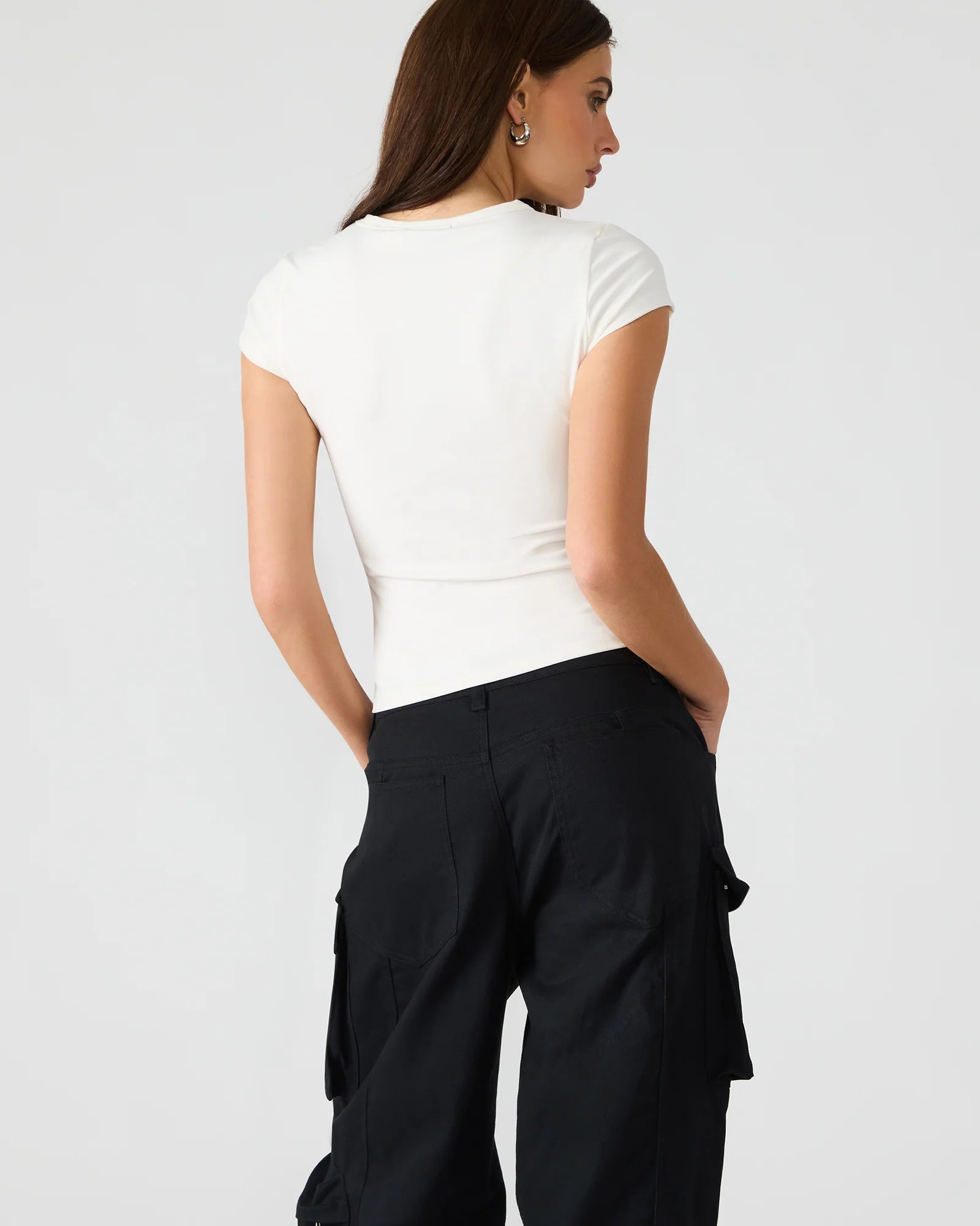 The GOLDIE TEE ANTIQUE, a form-fitting graphic crafted to complement your silhouette with precision. Its tailored design ensures a flattering fit, making it ideal for layering or wearing solo. Expertly constructed, this piece combines style and comfort for a versatile, modern wardrobe staple.