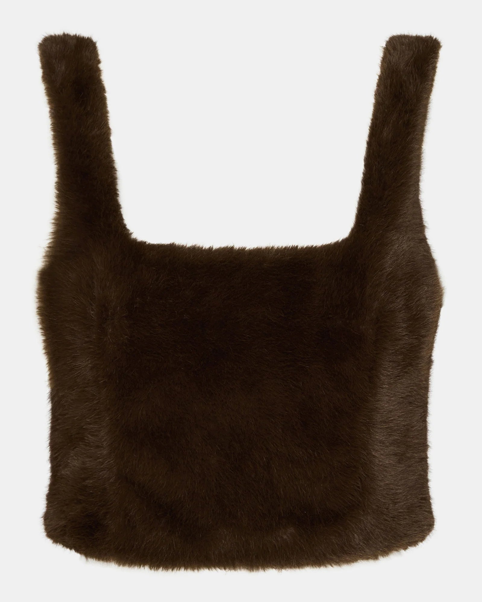 Elevate your winter wardrobe with the HANNIA FAUX FUR DARK ESPRESSO. Crafted for warmth and style, this cropped top features a luxurious faux fur texture and a convenient back zip closure for a sleek fit. Ideal for layering or statement looks, it combines sophistication with comfort for effortless seasonal fashion.