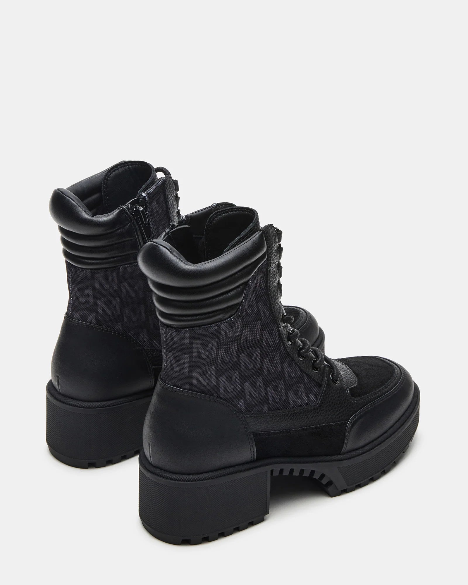 The HIKER BLACK MULTI lug lace-up ankle boot combines rugged durability with modern style. Featuring a sturdy lug sole for enhanced traction and a secure lace-up design, this offers reliable support and comfort for urban adventures or outdoor excursions. Its versatile finish adds a refined touch to any outfit while ensuring lasting wear. Ideal for those seeking both functionality and fashion in a compact ankle boot.