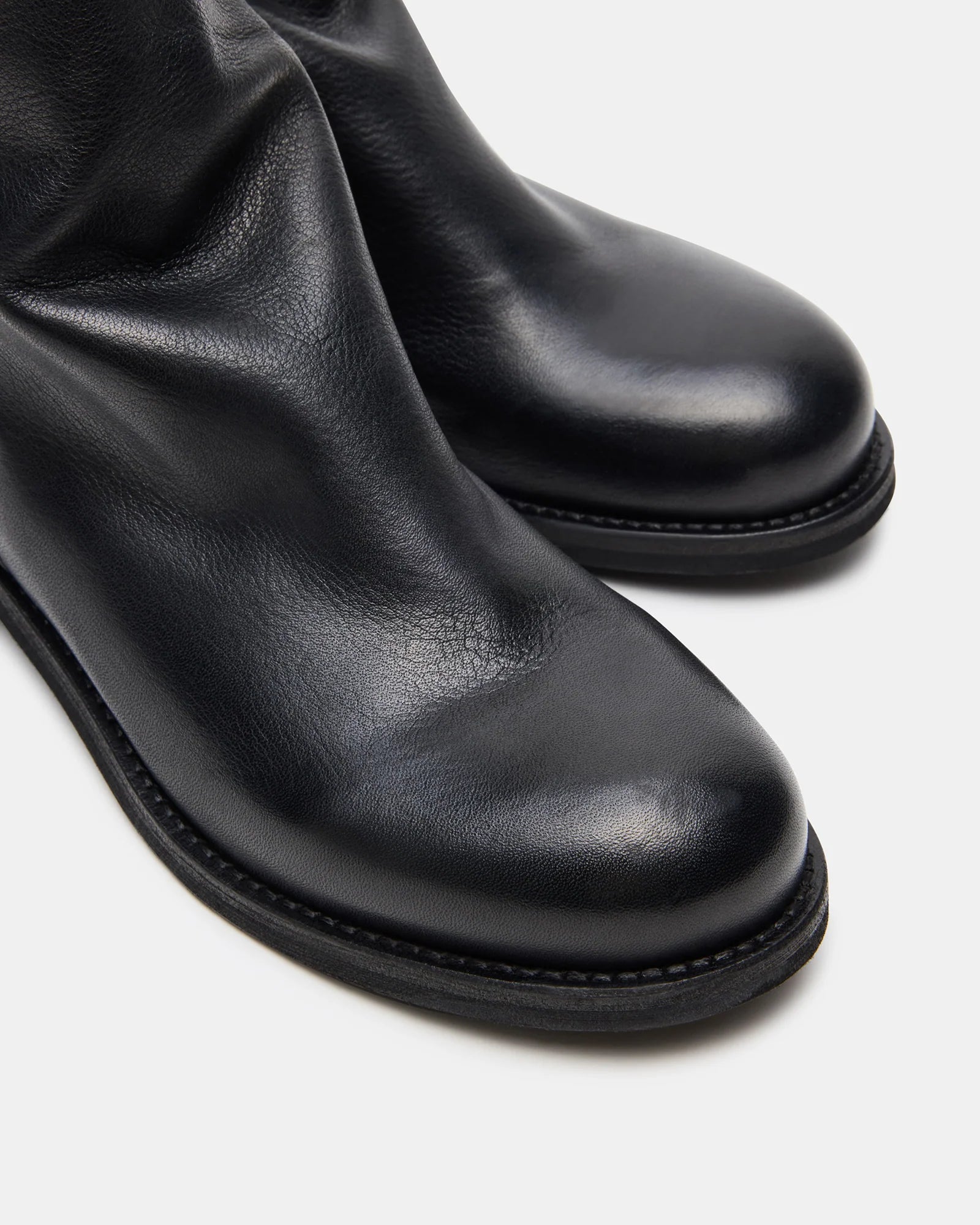 Crafted from premium materials, the HUGHIE BLACK LEATHER ankle boot combines classic style with modern design for versatile wear. Its streamlined silhouette ensures a sleek fit around the ankle, while a sturdy sole offers reliable support and durability. Ideal for elevating both casual and formal outfits, this delivers expert craftsmanship and lasting comfort.