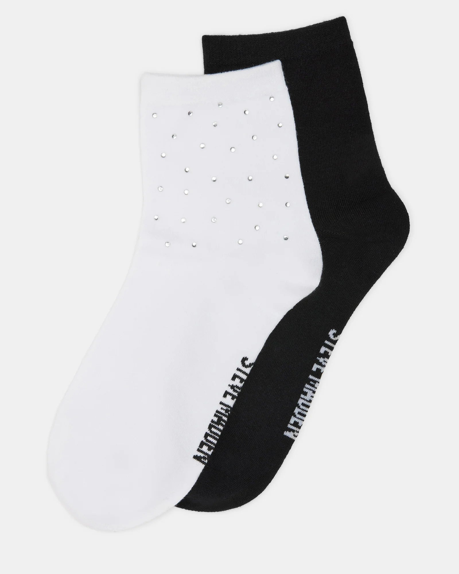 Introducing our ICED , a must-have for any fashion-forward individual. This 2-pack set showcases a delicate touch of glitter and elegance on the white sock, complemented by a classic black sock, creating versatile options for any ensemble. Crafted from premium materials for optimal comfort and quality.