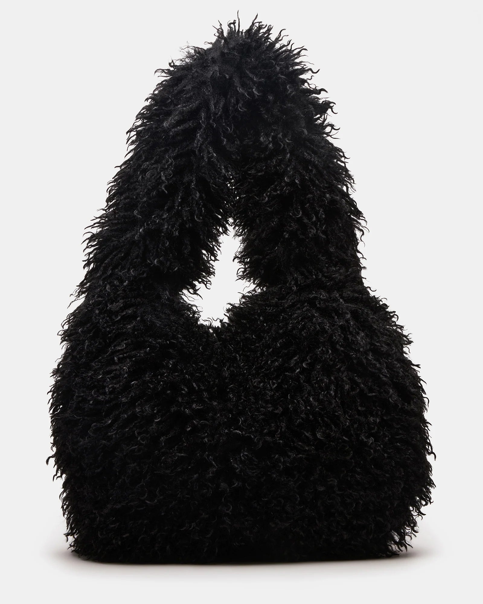 This ICONIC BAG BLACK tote combines style with practicality. Featuring a soft faux fur hobo shoulder strap for comfortable carrying, it includes a removable bag charm that adds a customizable touch. The interior zipper pocket keeps essentials secure, while the magnetic snap closure offers easy access with reliable closure. Perfect for everyday use, this handbag balances fashion and functionality seamlessly.