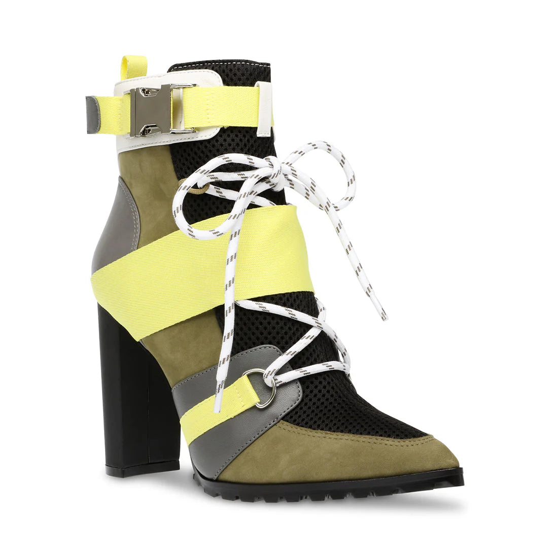 Sporty details, ranging from a metal side-release buckle to a mesh inset, give the ILLUSION bootie youthful attitude, while a pop-y color palette highlights construction. The ultimate athleisure-friendly heel.