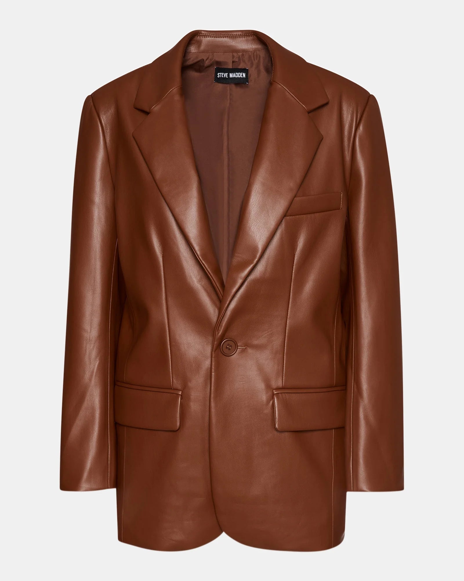 The IMAAN gives you the perfect relaxed structure for layering with a faux leather construction and an oversized boyfriend fit.