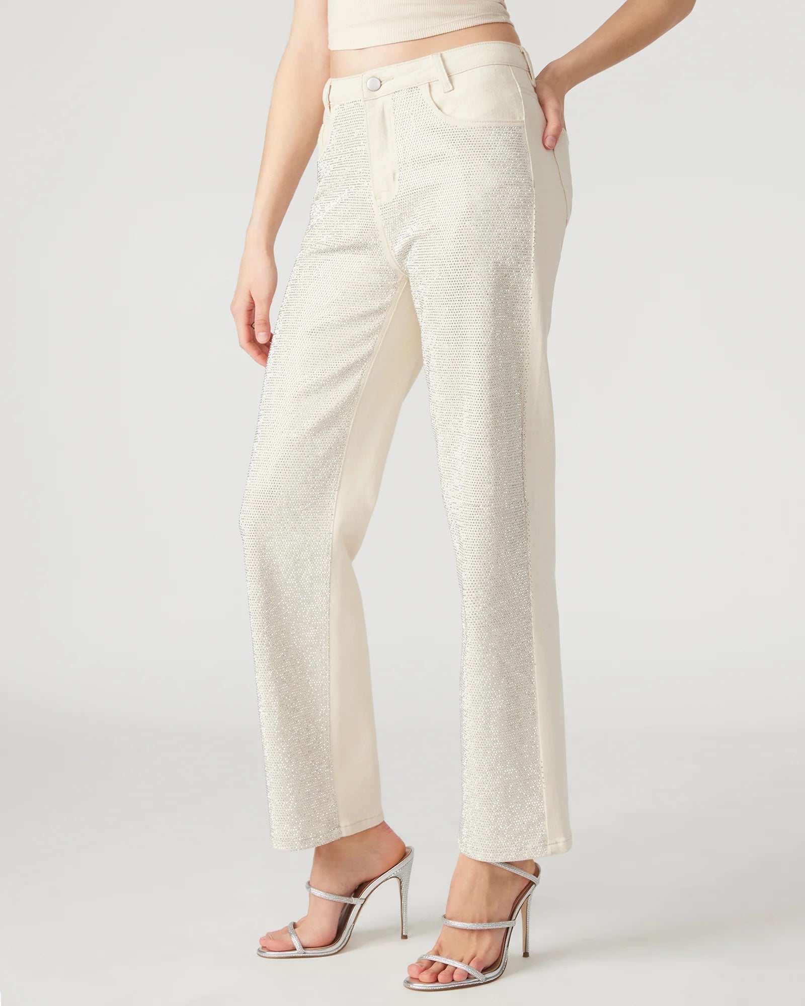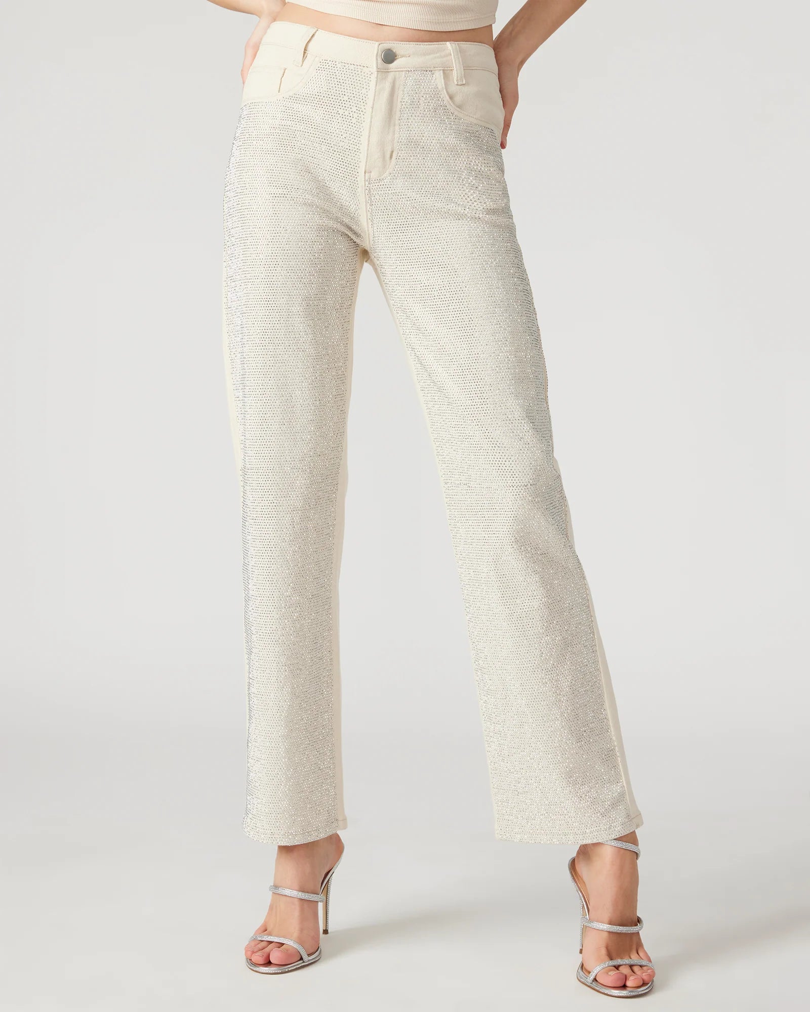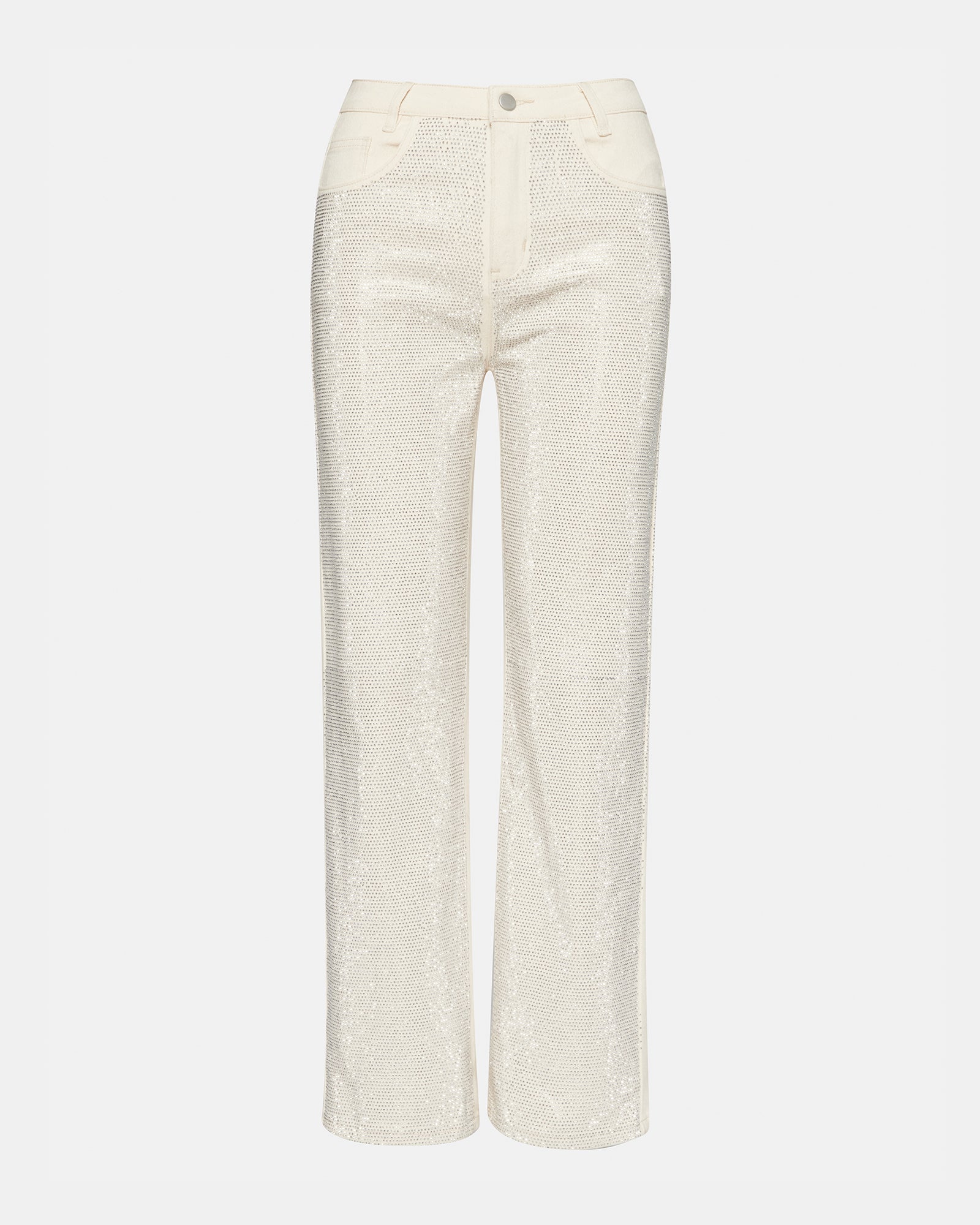 The JESSE are the perfect embellished straight leg jeans, adorned with stunning rhinestones on the front. Elevate your style with this unique and eye-catching pant, perfect for making a statement.