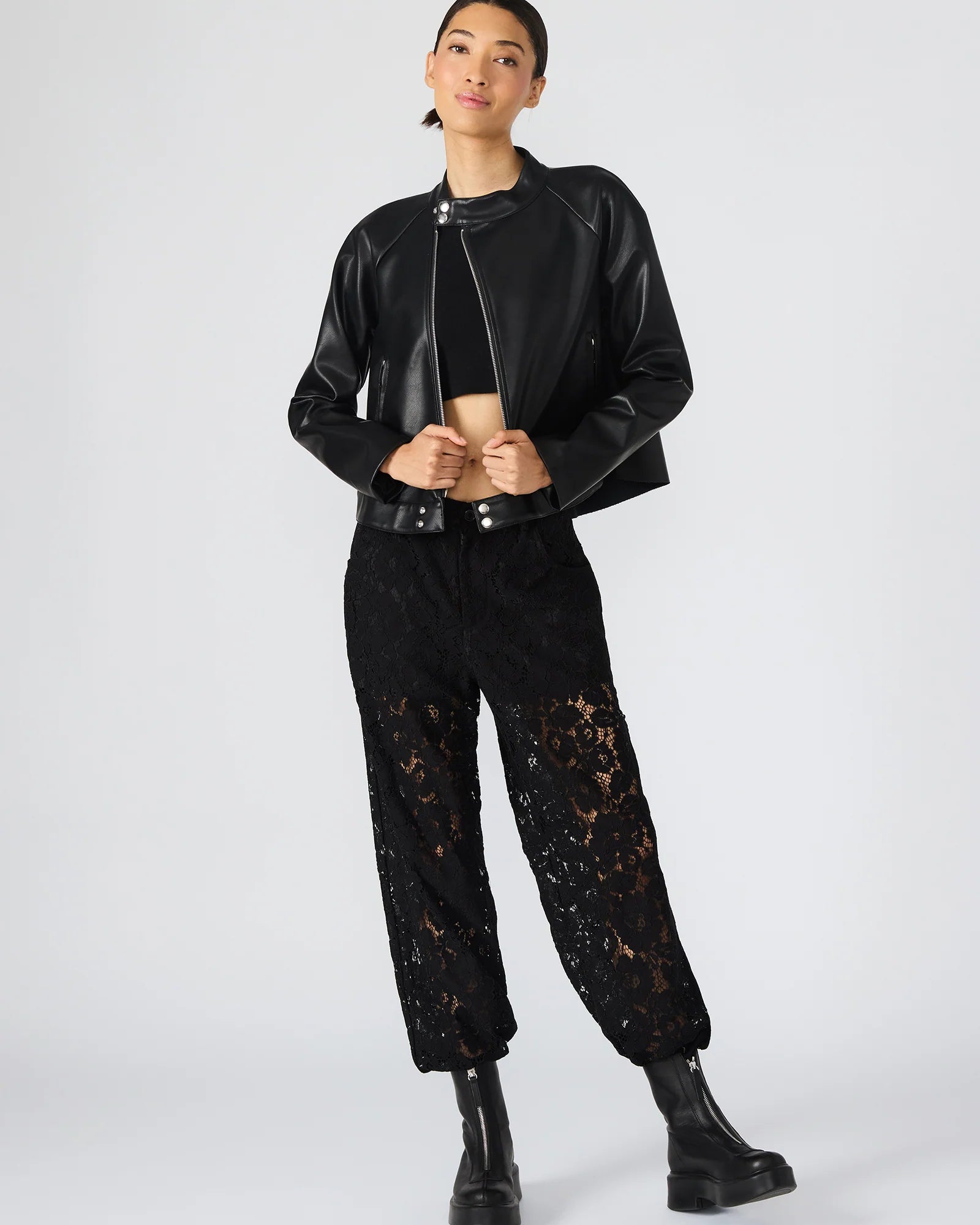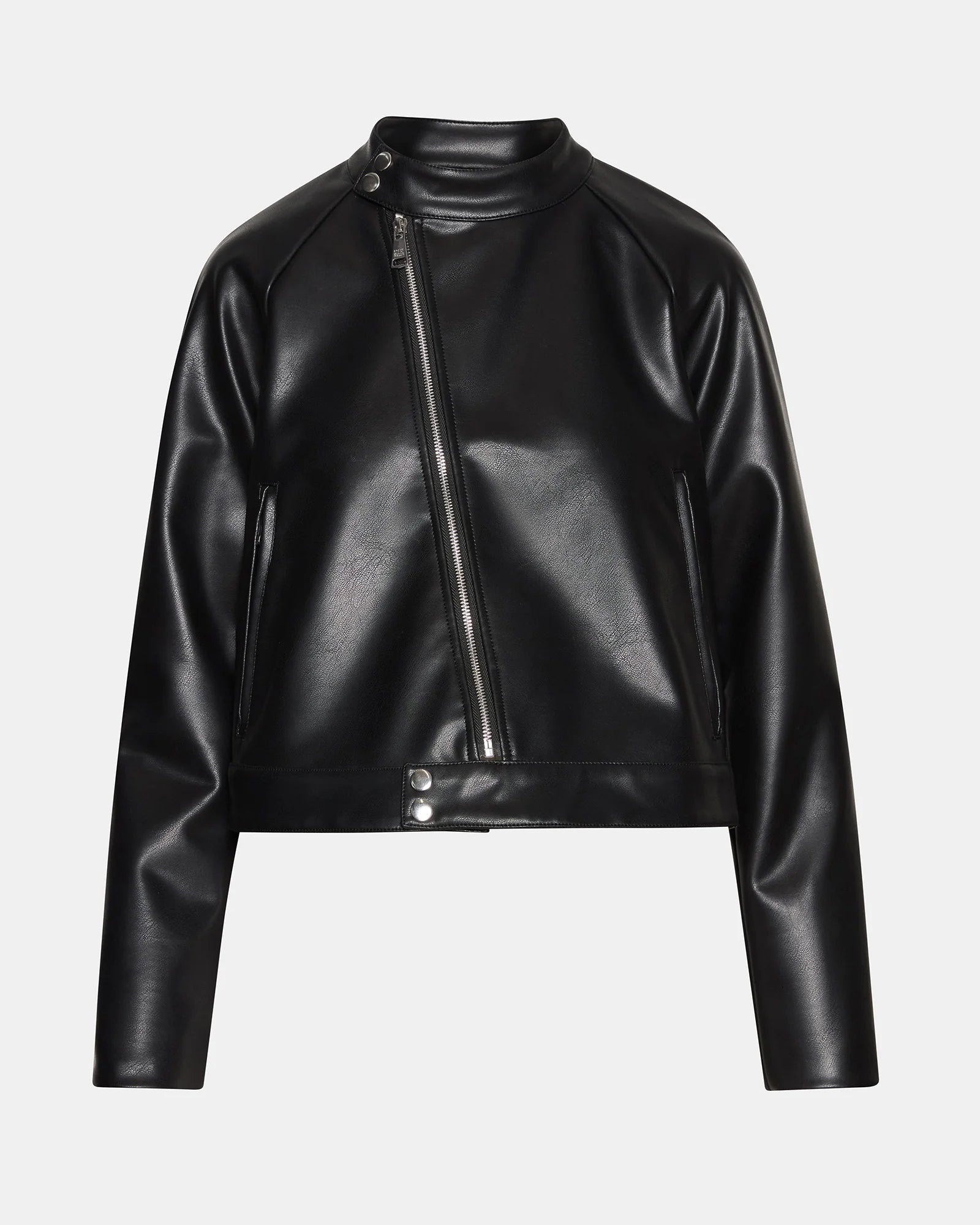 The JETT Black is a refined long-sleeved faux leather jacket designed with a secure zip-up closure for a streamlined silhouette. It's high-quality material offers the look of genuine leather while ensuring ease of care and durability. Ideal for layering, this jacket delivers a sophisticated edge to any outfit, balancing contemporary style with functional design.
