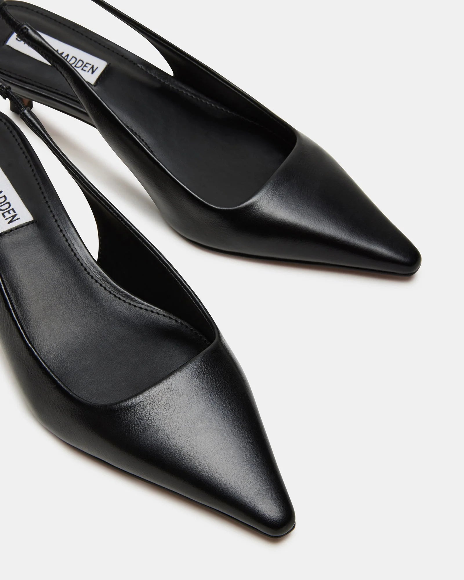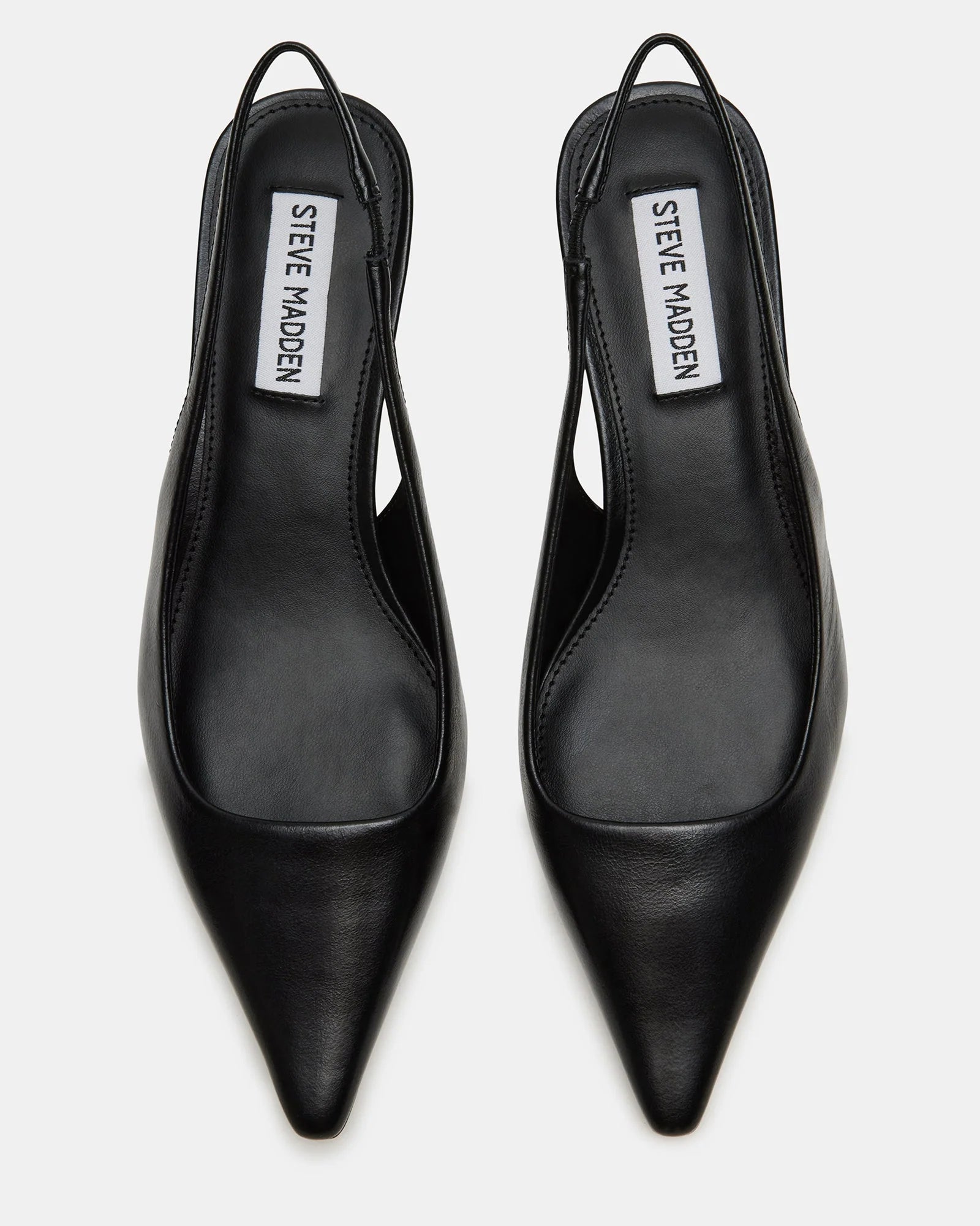 The KARI features a point toe, a low kitten heel, and a slim strap for a sleek and streamlined silhouette.